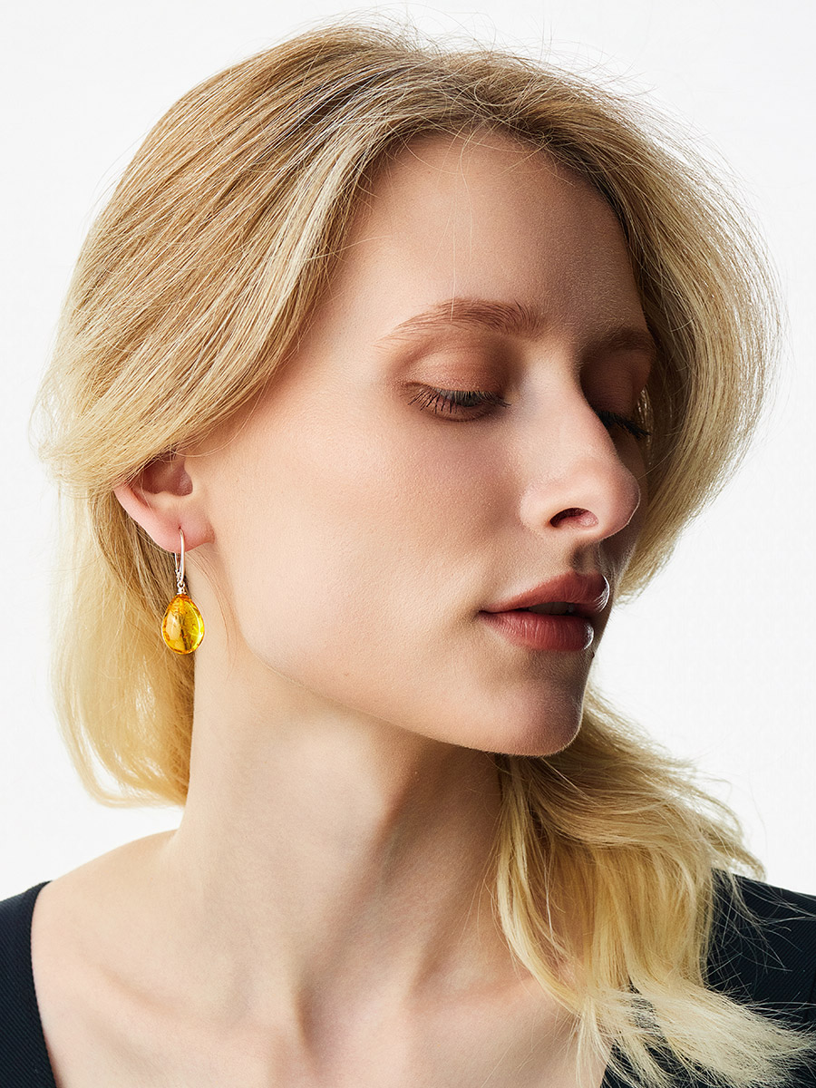 Яркие серьги из цельного натурального янтаря лимонного цвета «Паланга»
