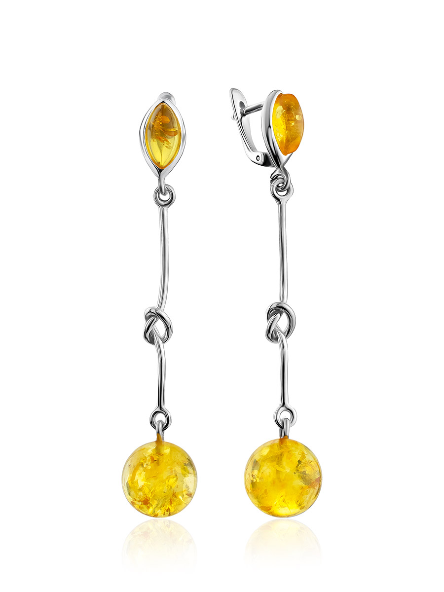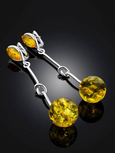 Яркие серьги из искрящегося янтаря лимонного цвета «Париж»