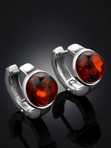 Яркие серьги из натурального вишнёвого янтаря «Санрайз»