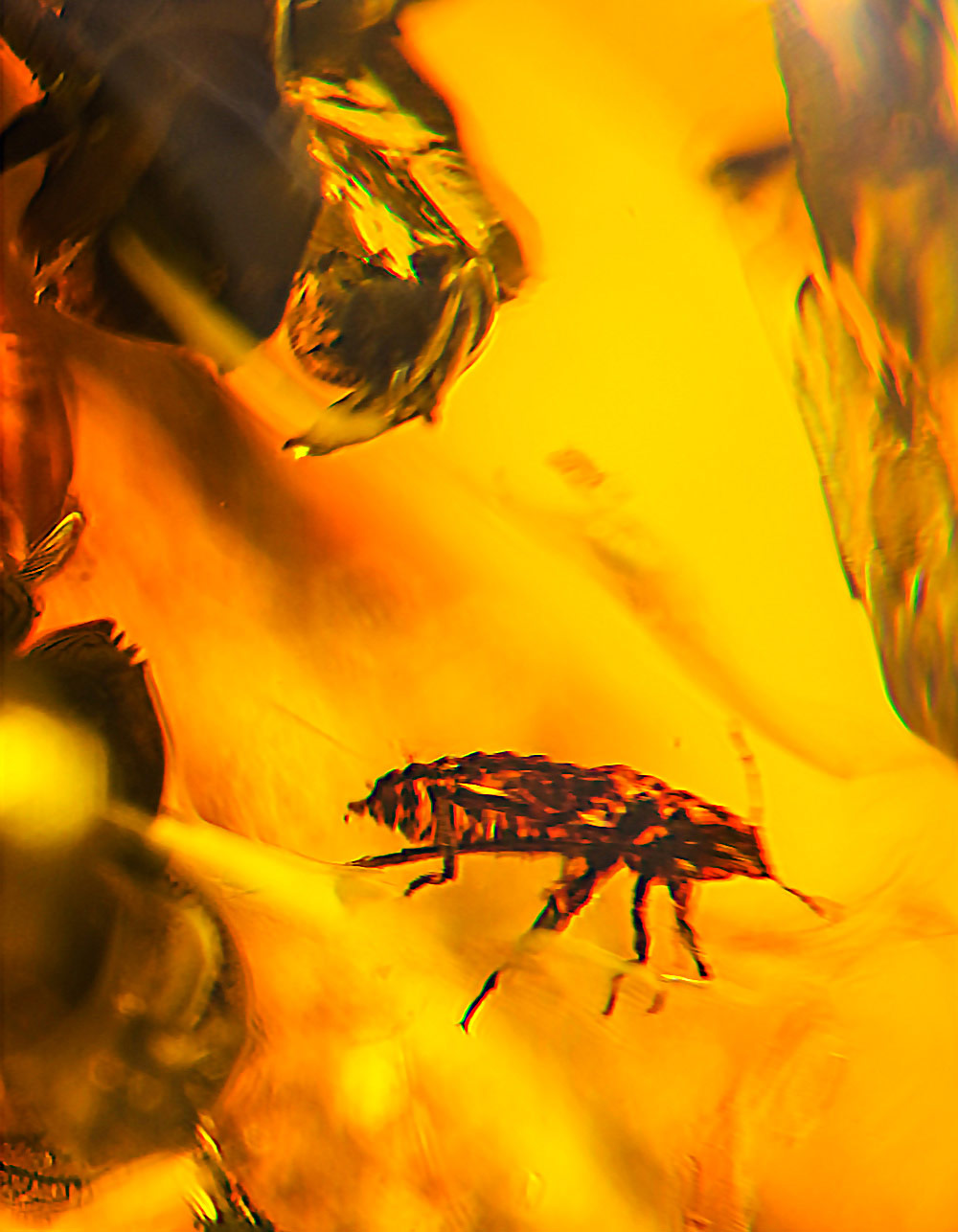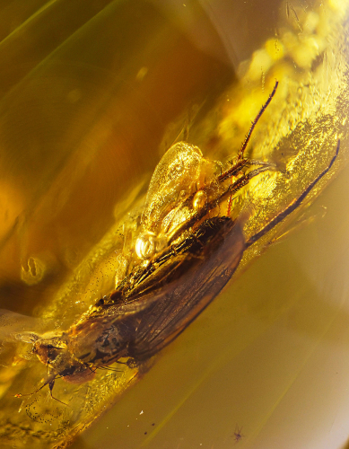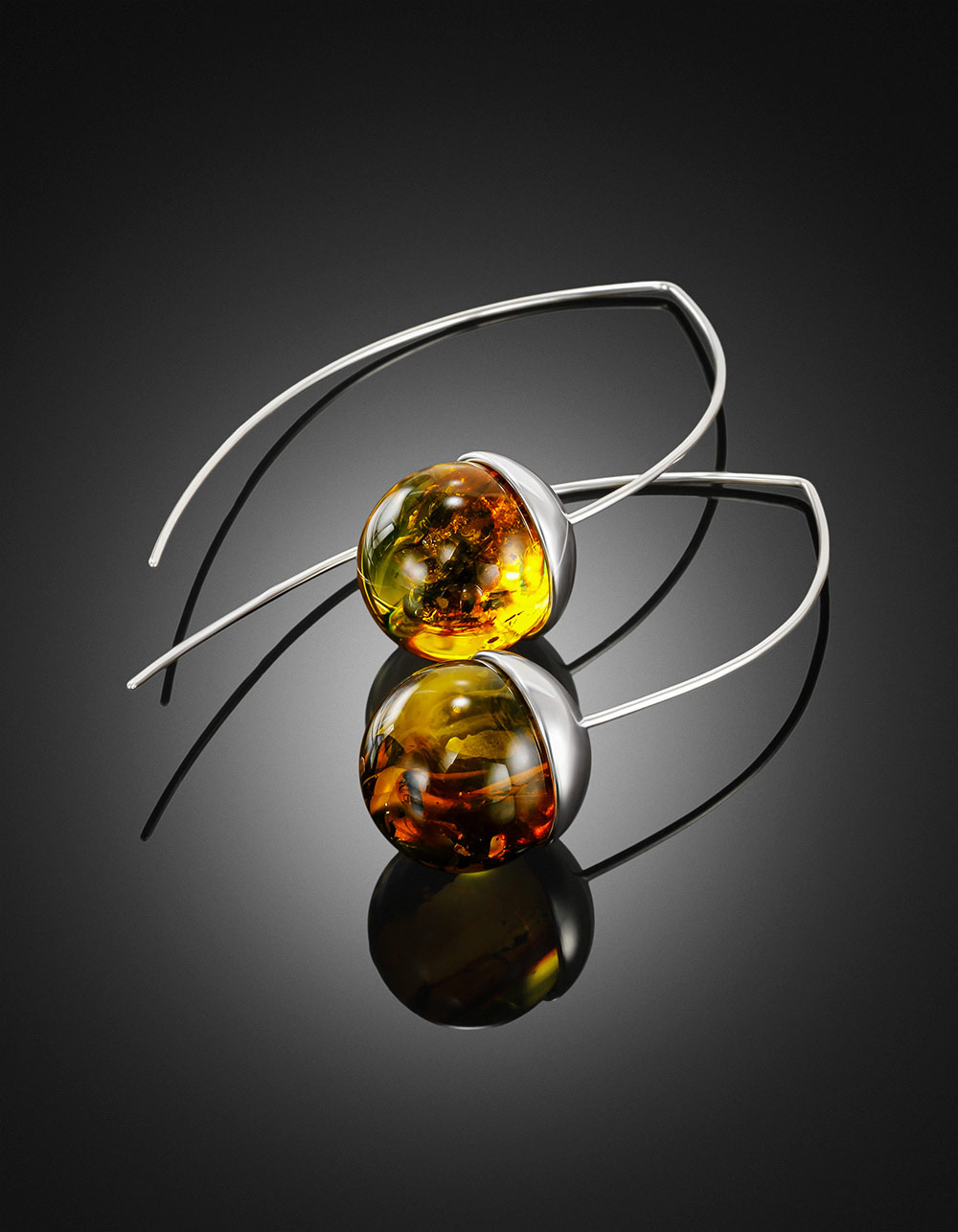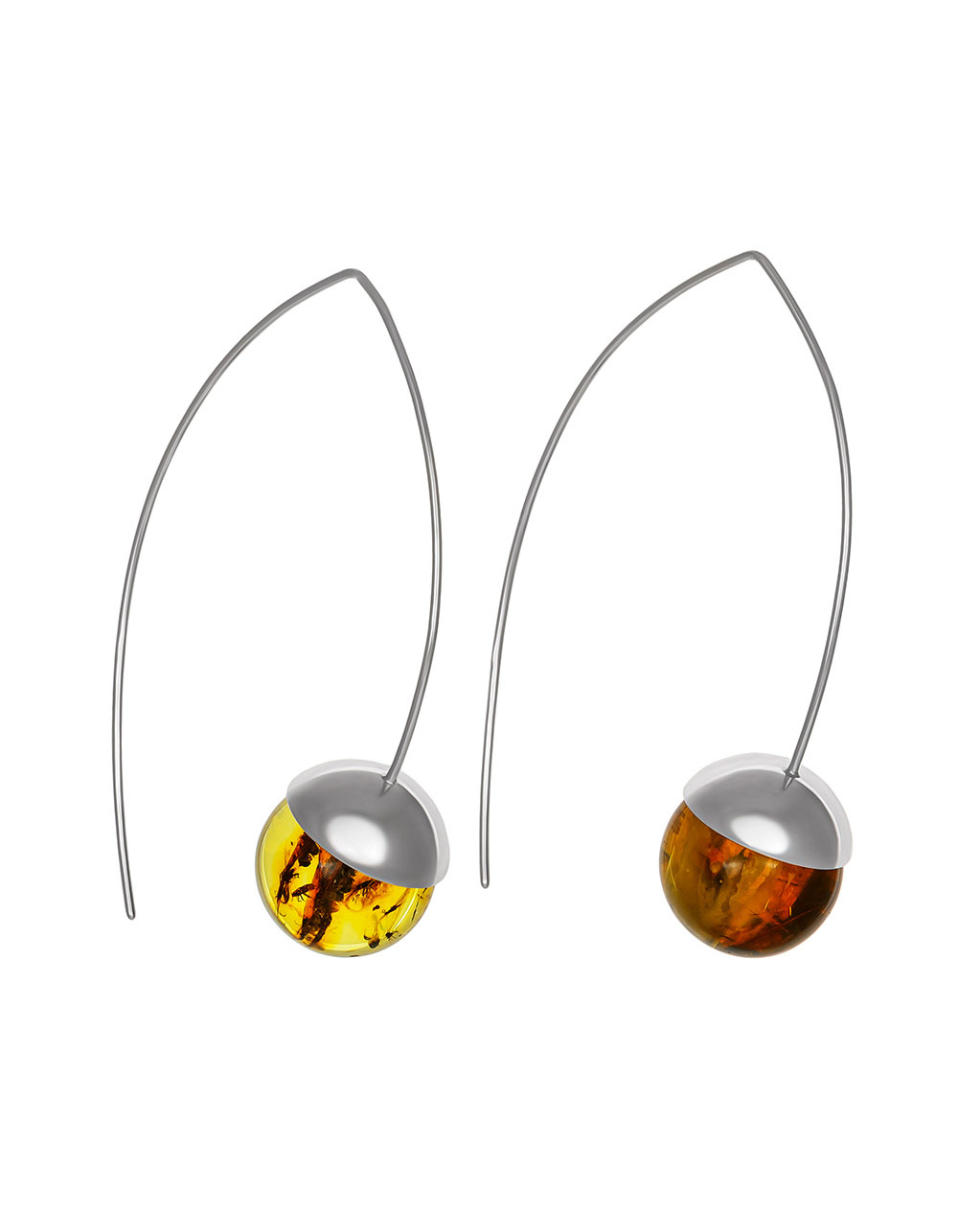 Яркие серьги «Клио» с янтарём с насекомыми