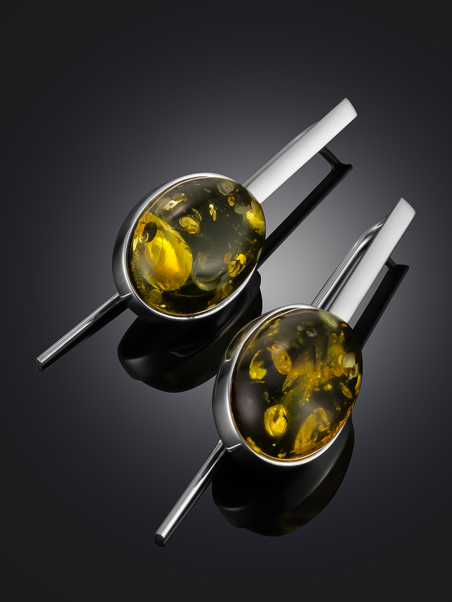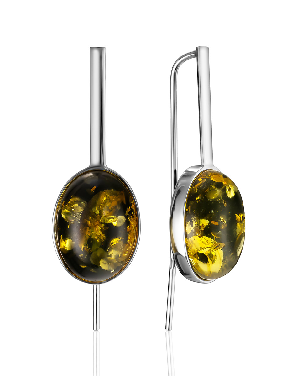 Яркие серьги-крючки «Годжи» с искрящимся тёмно-зелёным янтарём