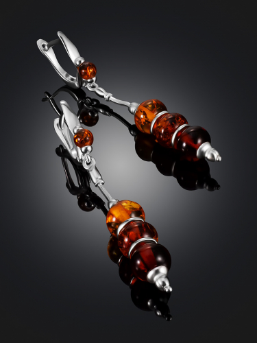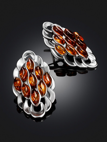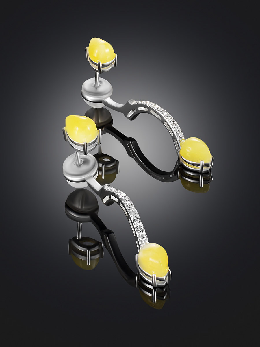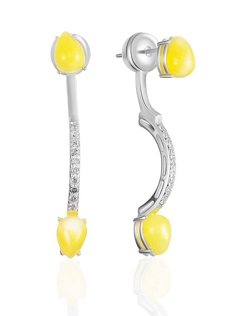 Яркие серьги с молочно-медовым янтарём и фианитами «Ренессанс»