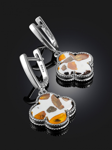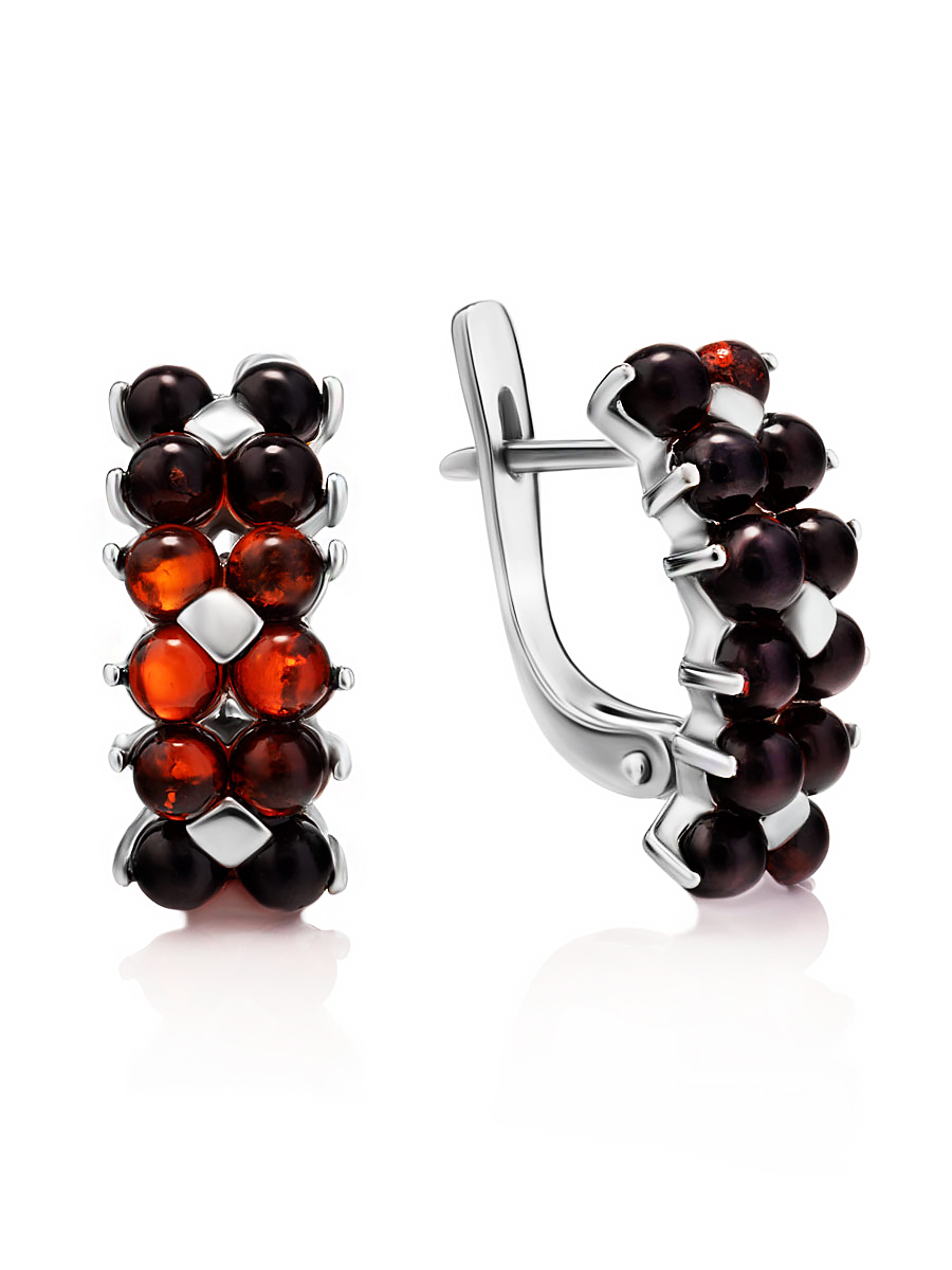 Яркие серьги с натуральным янтарём вишнёвого цвета «Мозаика»