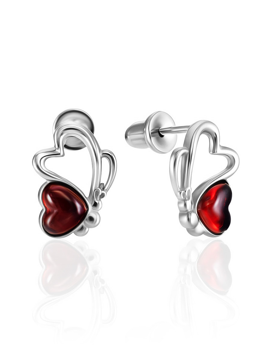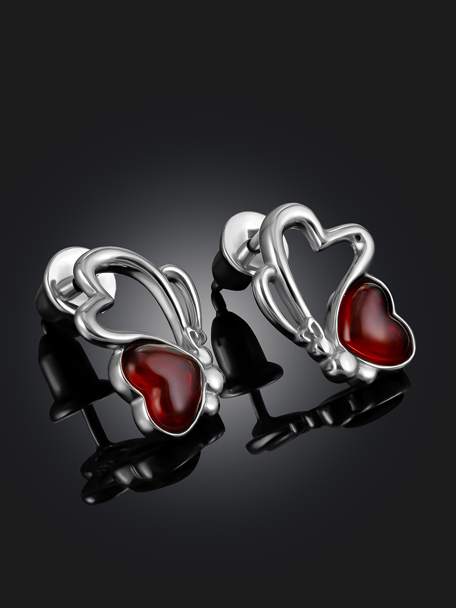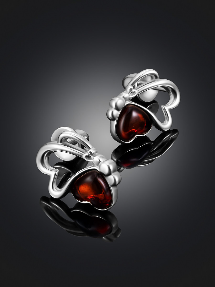 Яркие серьги с янтарём вишнёвого оттенка «Апрель»
