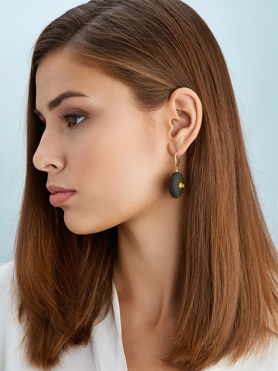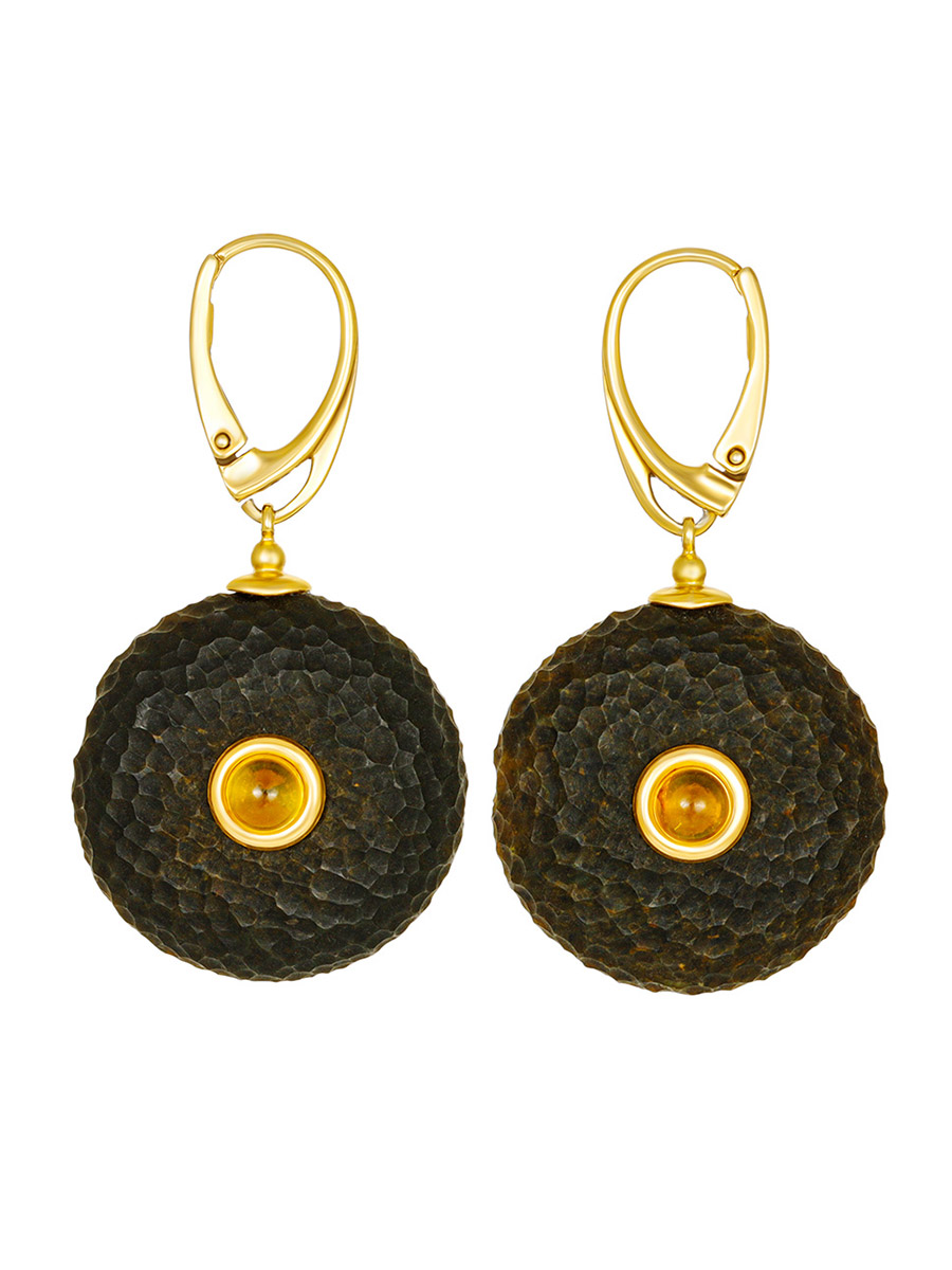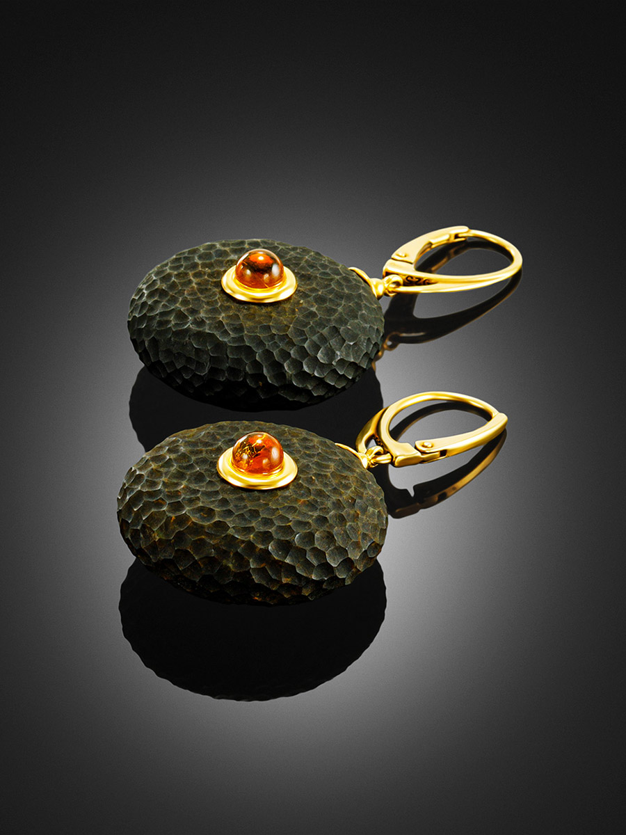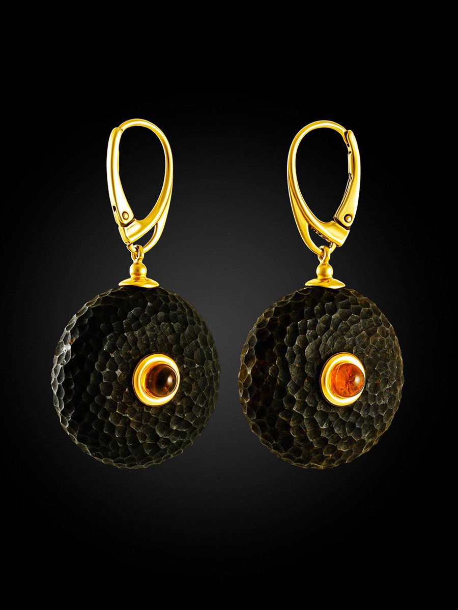 Яркие стильные серьги из натурального чёрного янтаря «Марс»