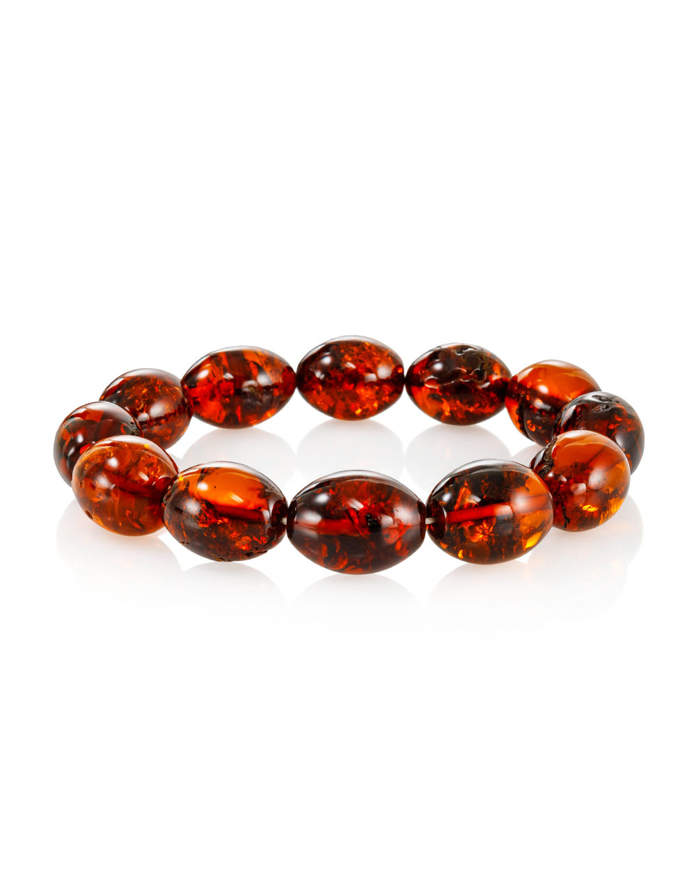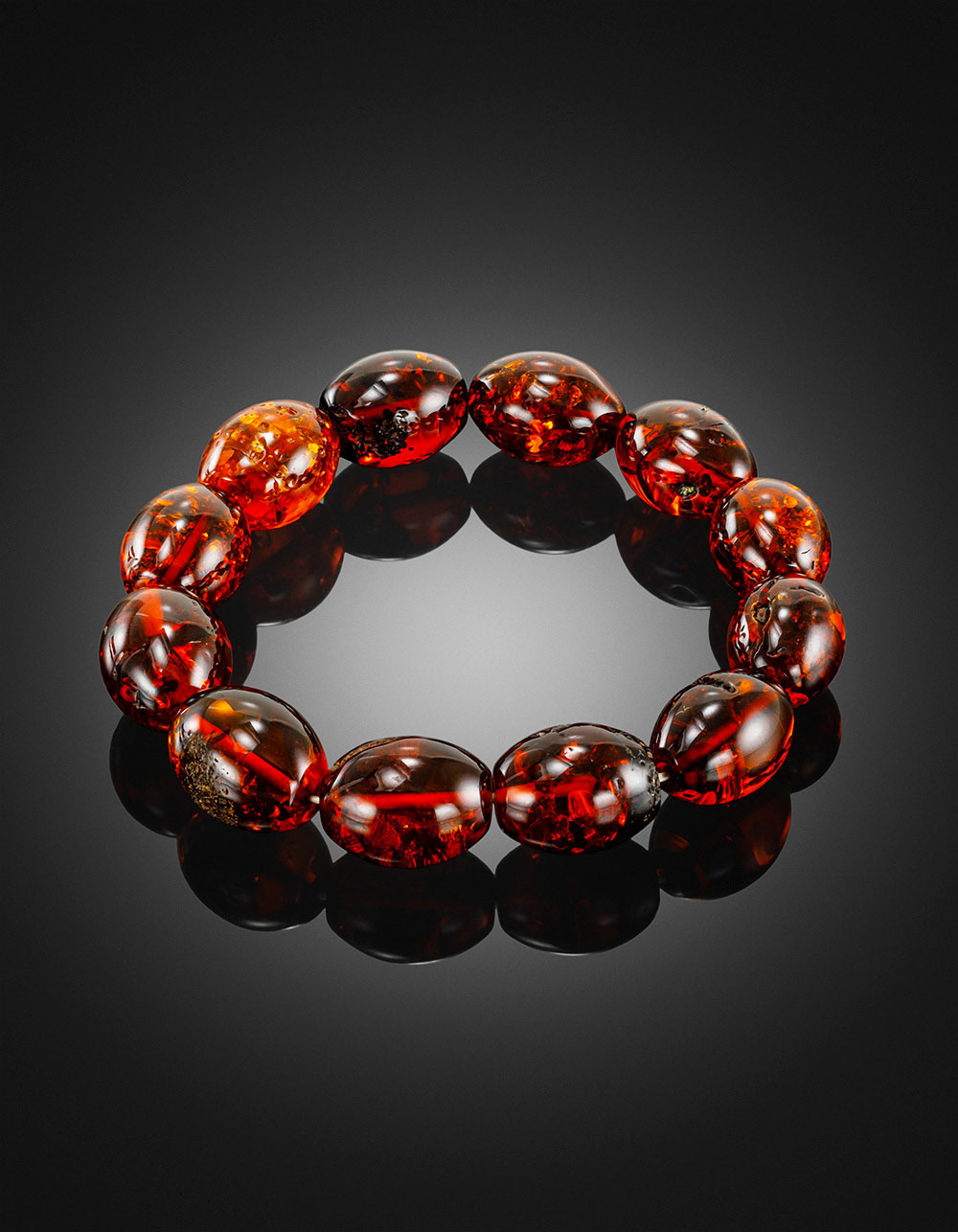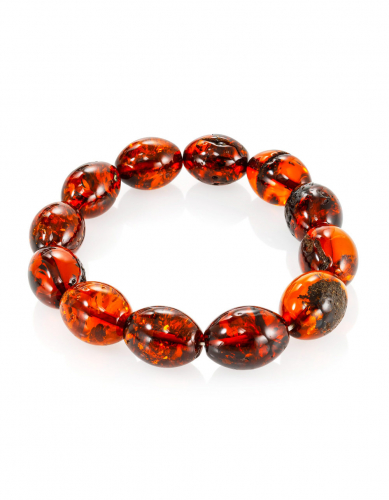 Яркий браслет из цельного натурального янтаря «Слива вишнёвая»