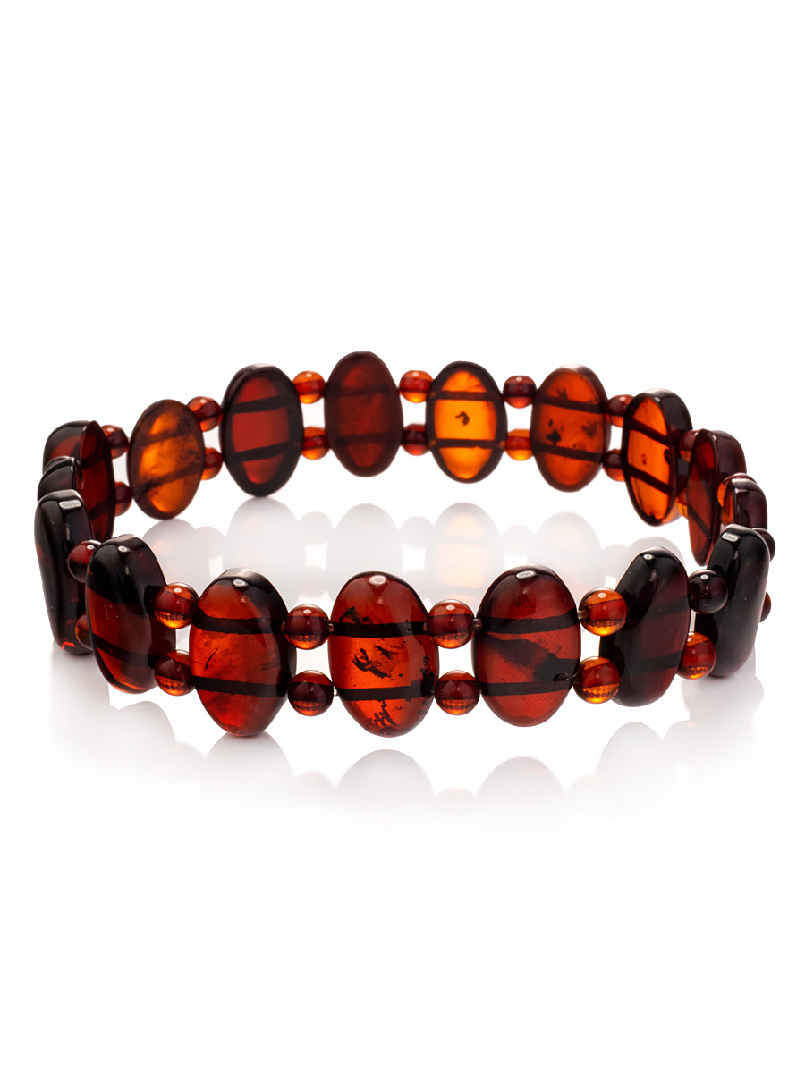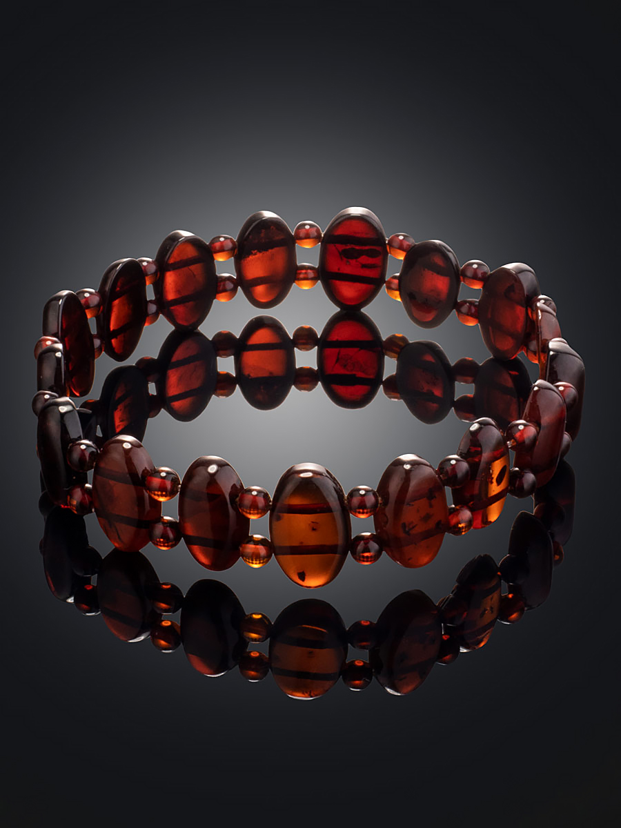 Яркий браслет из насыщенного тёмно-вишнёвого янтаря «Ойкумена»