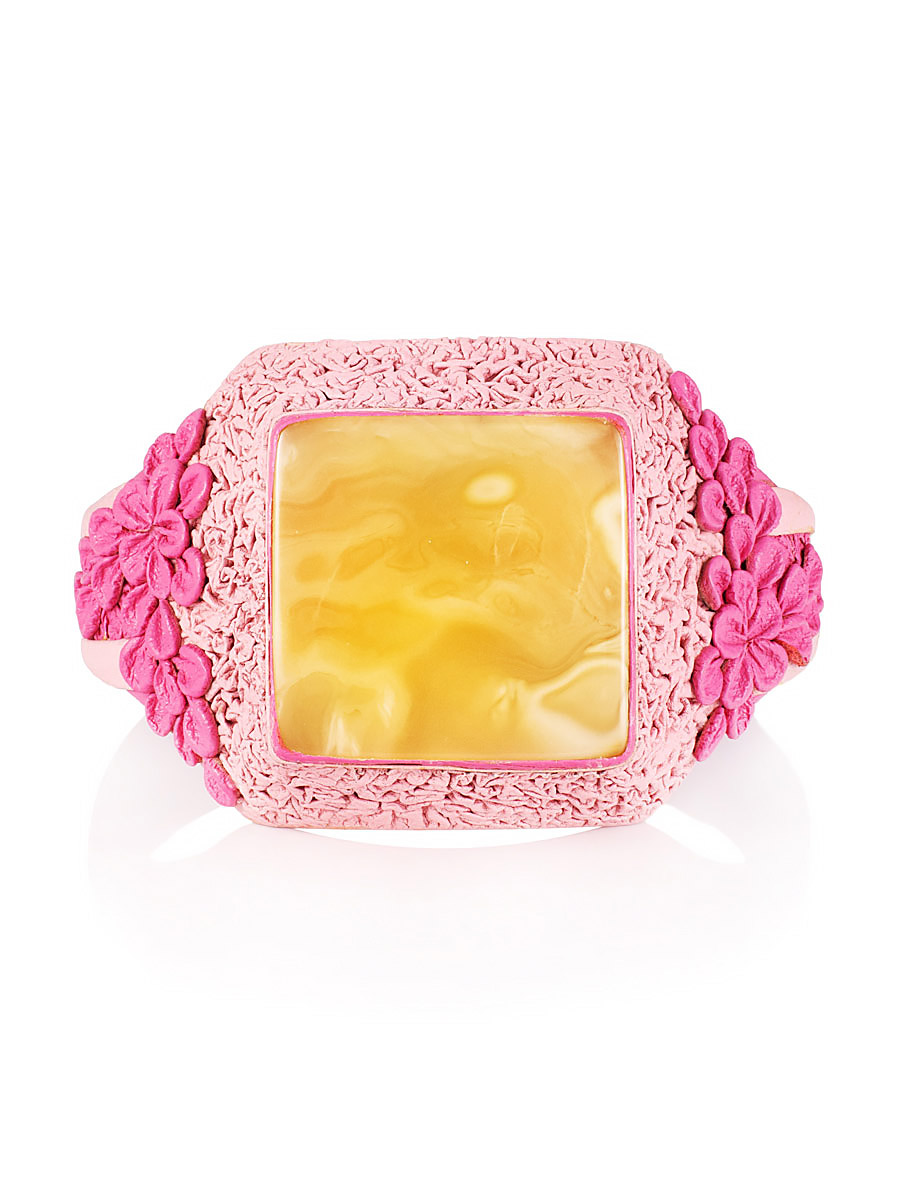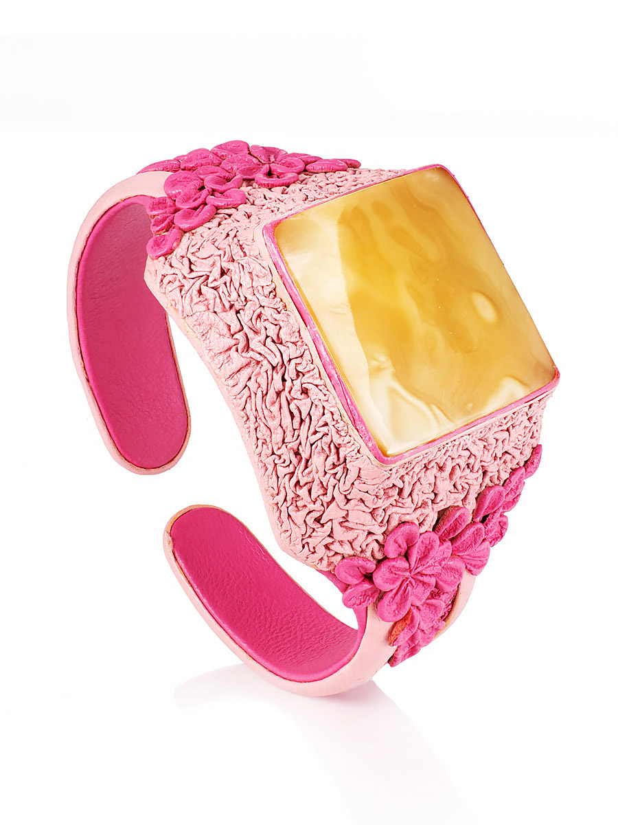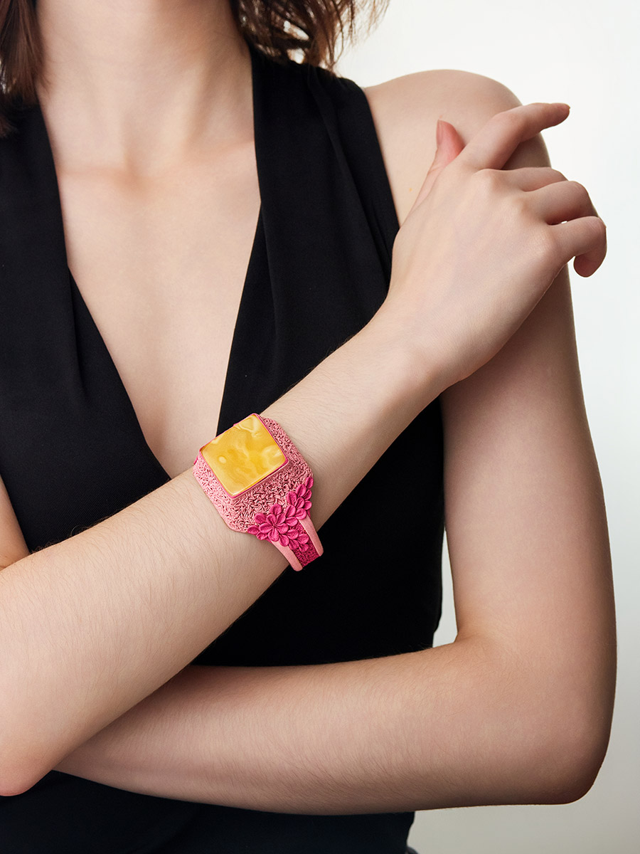 Яркий браслет из натуральной кожи и медового янтаря «Нефертити»