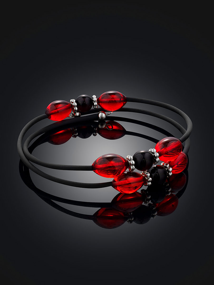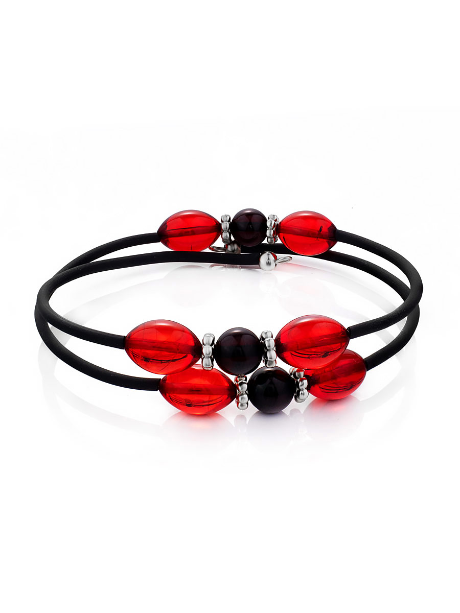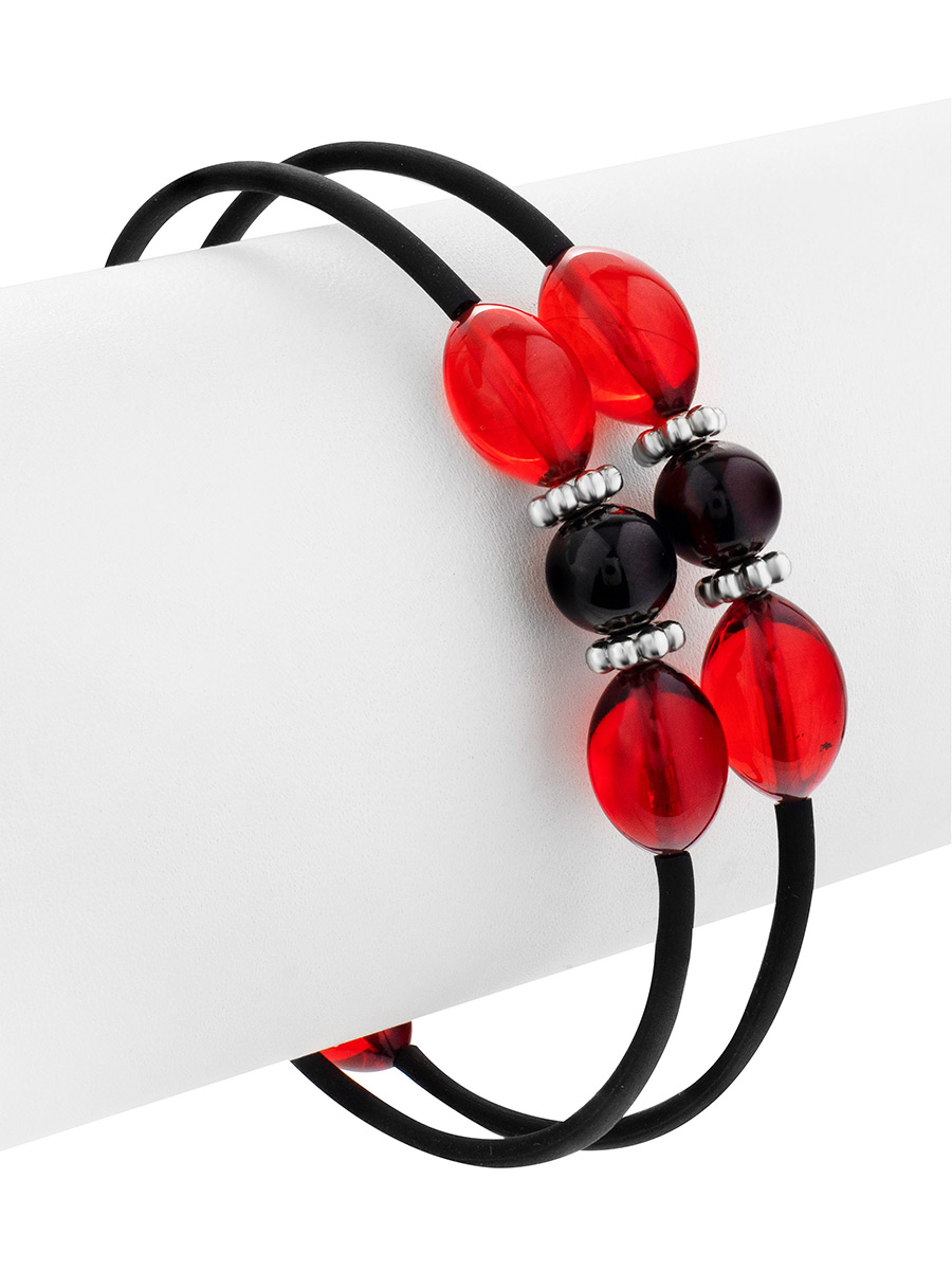 Яркий браслет на каучуковой струне с натуральным янтарём разных оттенков «Оклахома»