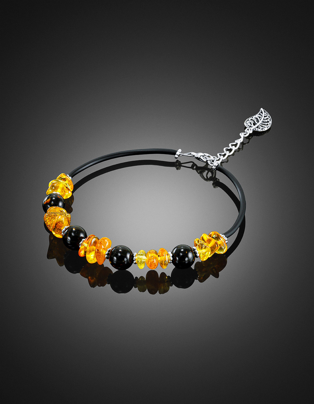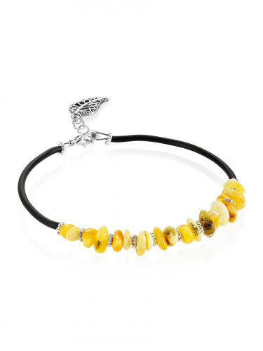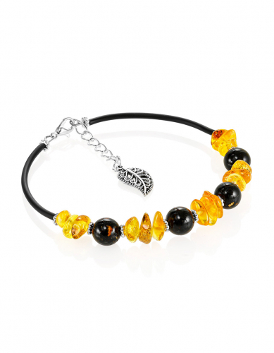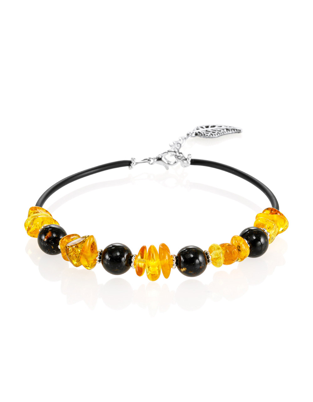 Яркий браслет-обруч из натурального янтаря и каучука «Оклахома»