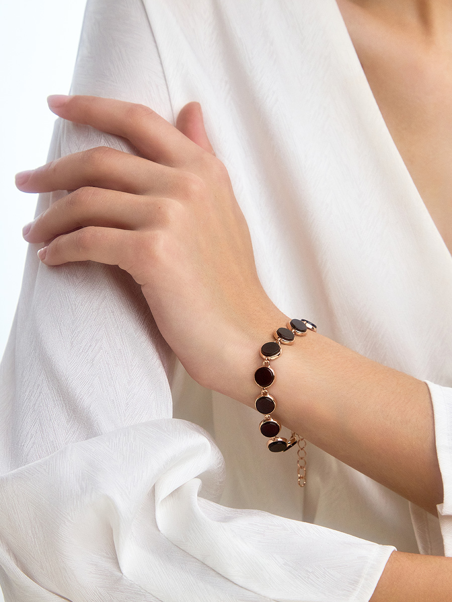 Размеры камня (мм): 8х8х2 Вес изд..показатьелия (г): 7.7 Размер / длина (см): 17 / 17.5 / 18 / 18.5 / 19 Цвет: вишневый Материалы: Натуральный янтарь / Серебро 925° / Позолота Коллекция: МонакоСчастье — это так просто. Объятия любимого человека, утро, начинающееся с улыбки, радость от каждого мгновения жизни, удовольствие от того, что ты делаешь — счастье складывается из простых, но таких важных вещей. Добавьте улыбку в каждый свой день, позвольте любви заполнить вас изнутри и наполните мир вокруг своей любовью, делитесь теплом и оно обязательно к вам вернётся. Дополните свой образ украшением из коллекции «Фурор», и пусть оно станет вашим счастливым талисманом.
