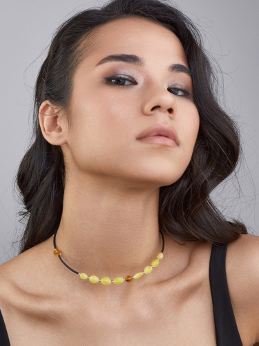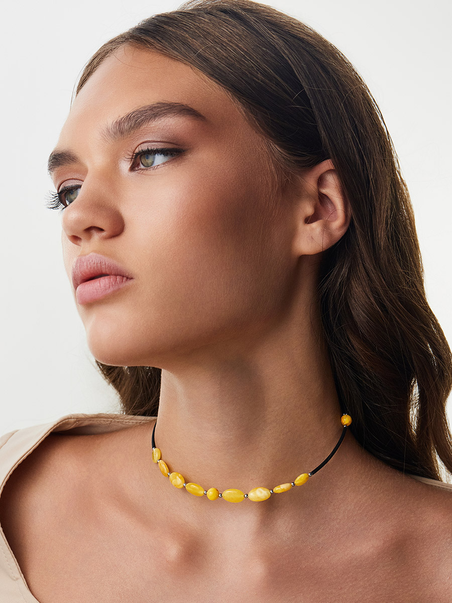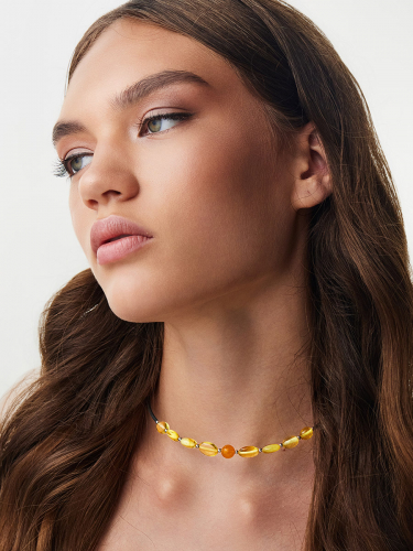 Яркий чокер-обруч «Оклахома» с янтарём медового цвета
