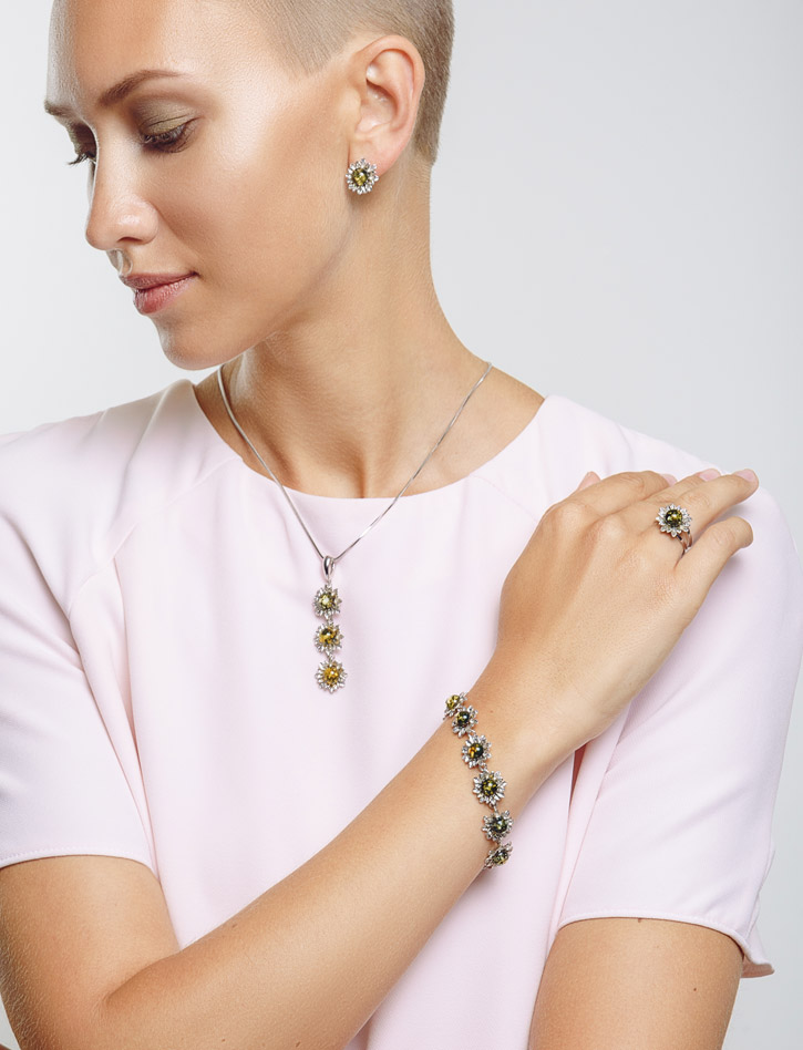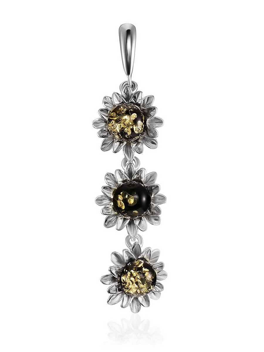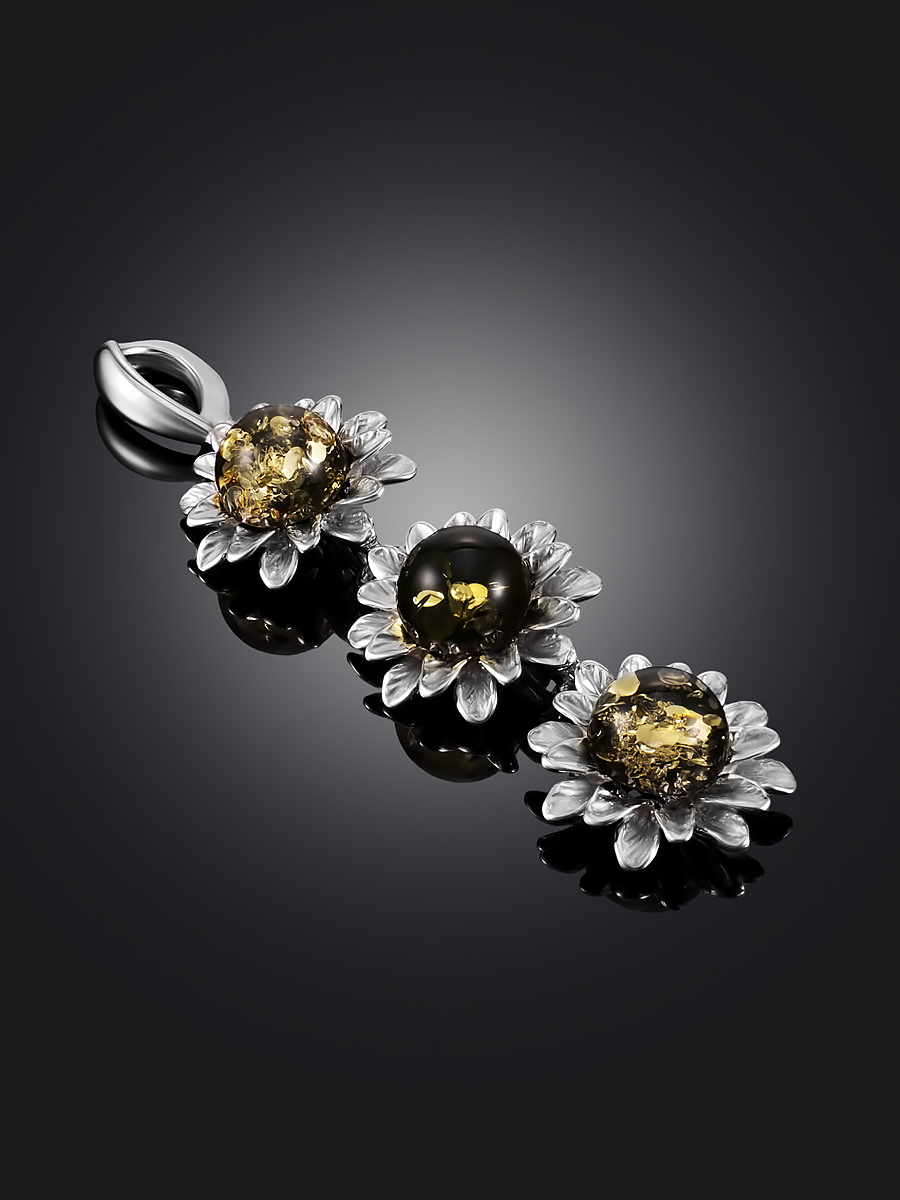 Яркий и нарядный кулон с зелёным янтарём «Астра»