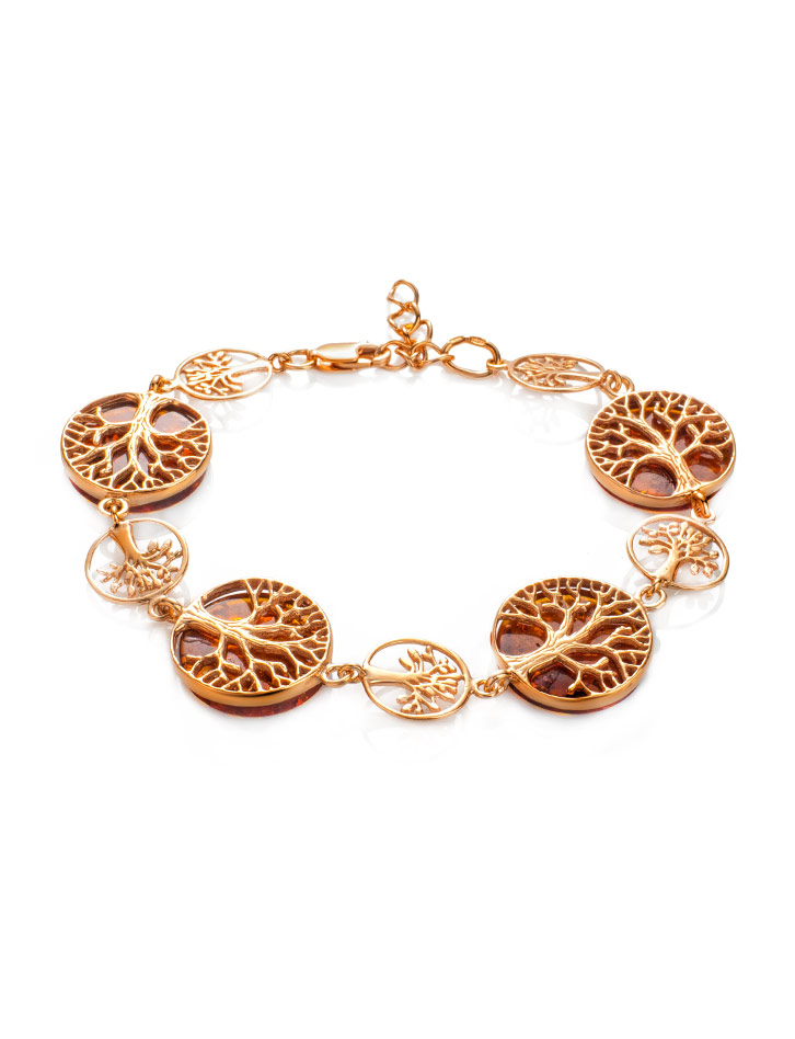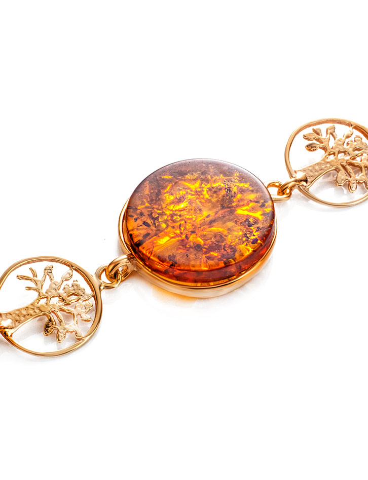 Яркий и оригинальный браслет с янтарём коньячного цвета «Бельтайн»