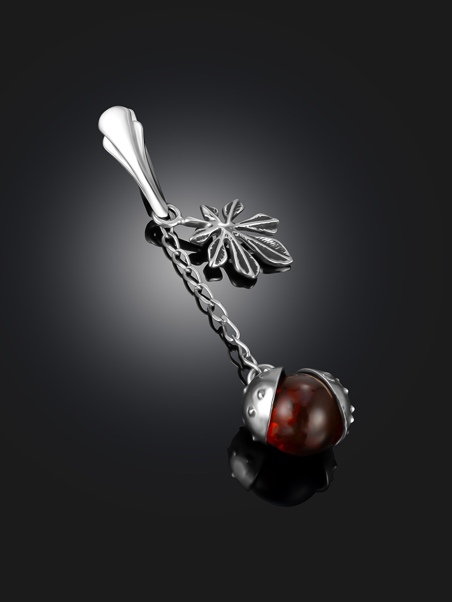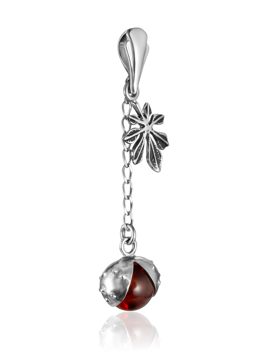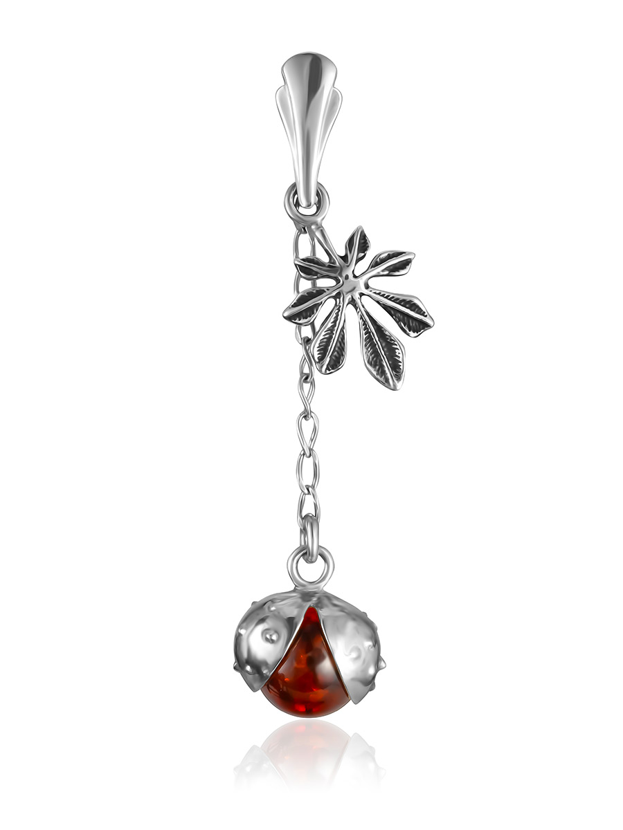 Яркий изящный кулон «Божья коровка» с тёмно-вишнёвым янтарём