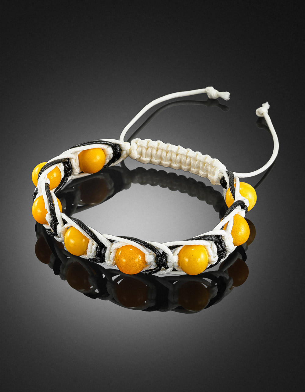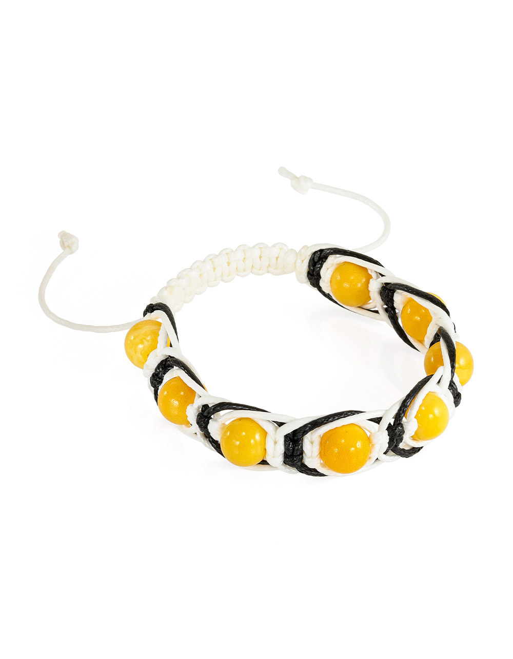 Яркий контрастный плетёный браслет «Шамбала» с медовым янтарём
