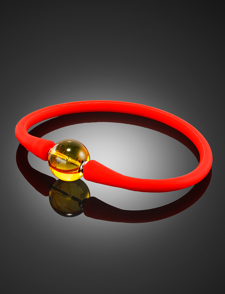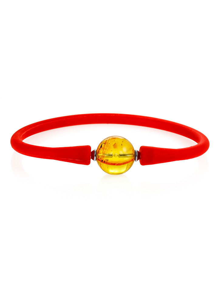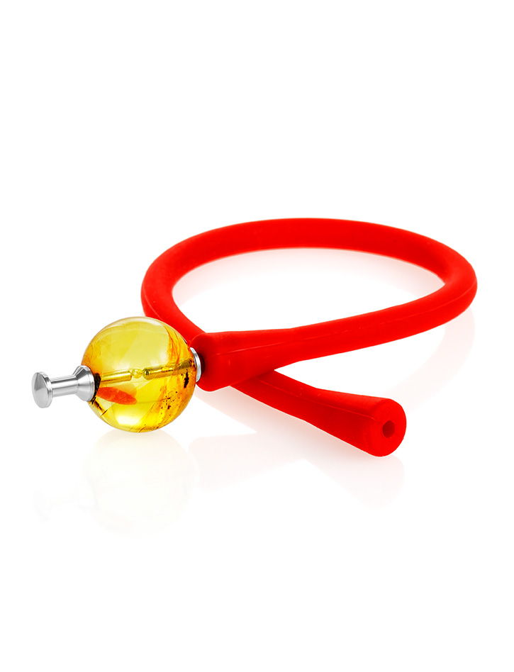 Яркий красный браслет из силикона с янтарной бусиной-проставкой «Гавайи»