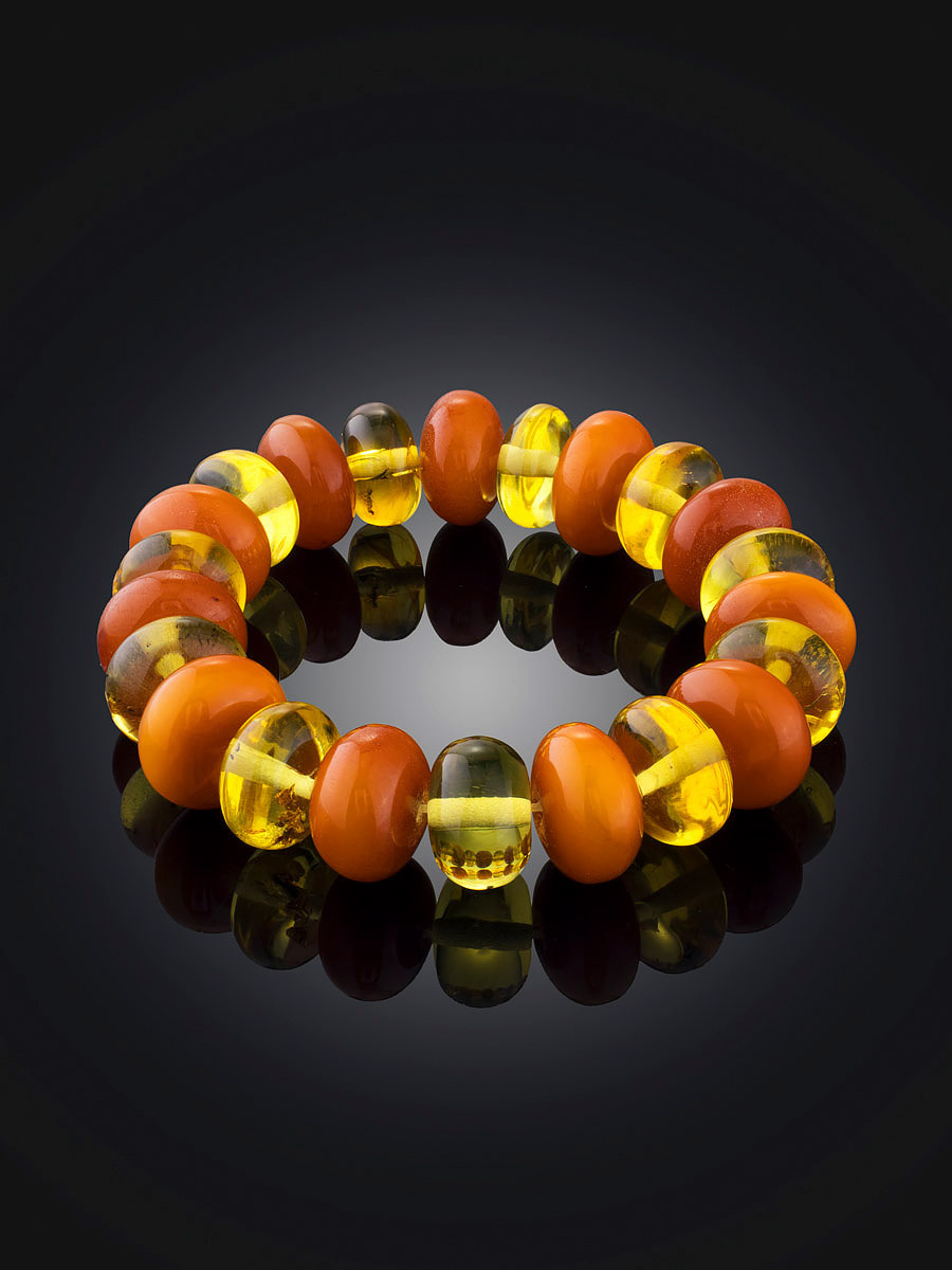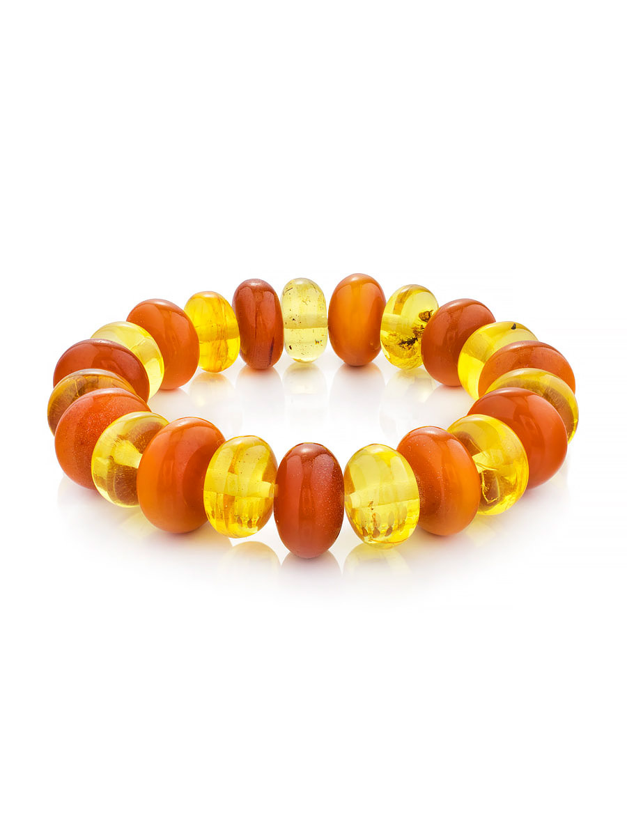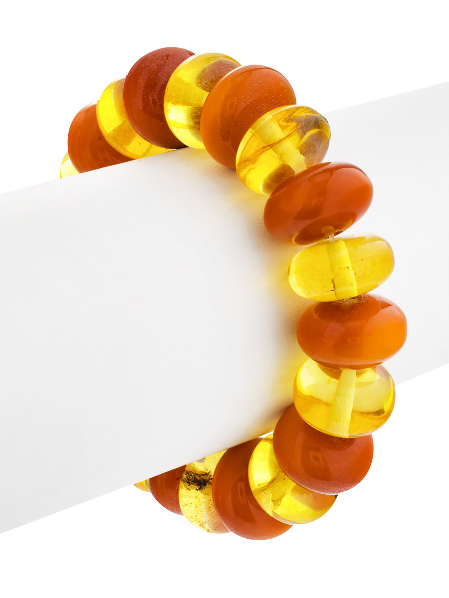 Яркий крупный браслет из натурального состаренного янтаря разных оттенков