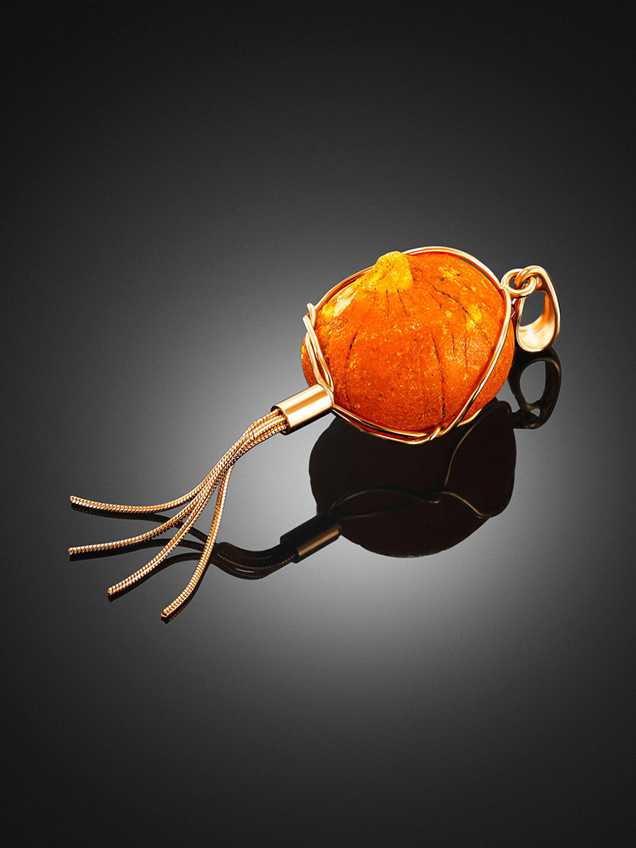 Яркий кулон «Неолит» из натурального янтаря с природной коркой