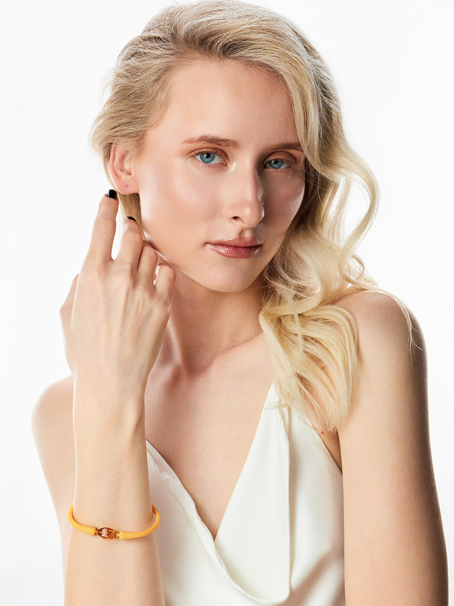 Яркий силиконовый браслет, украшенный натуральным янтарём «Гавайи»