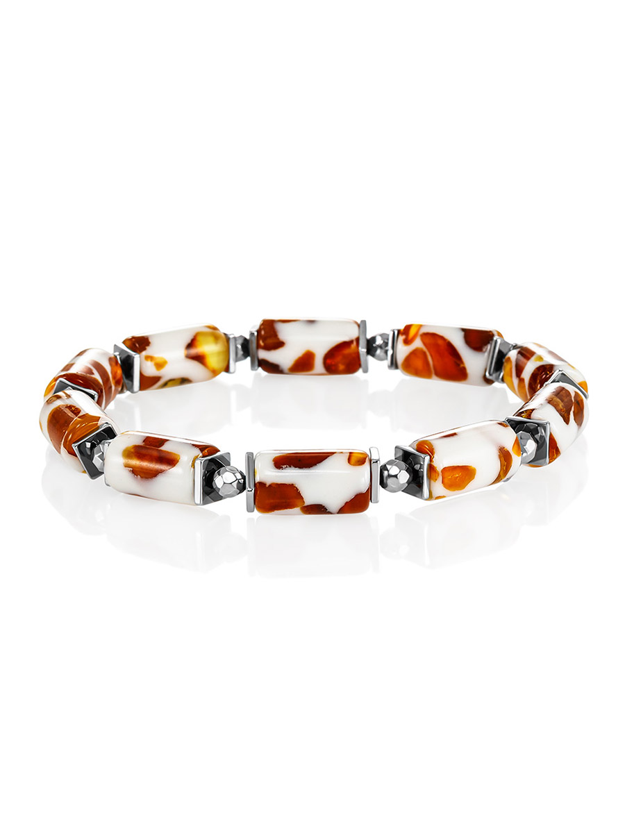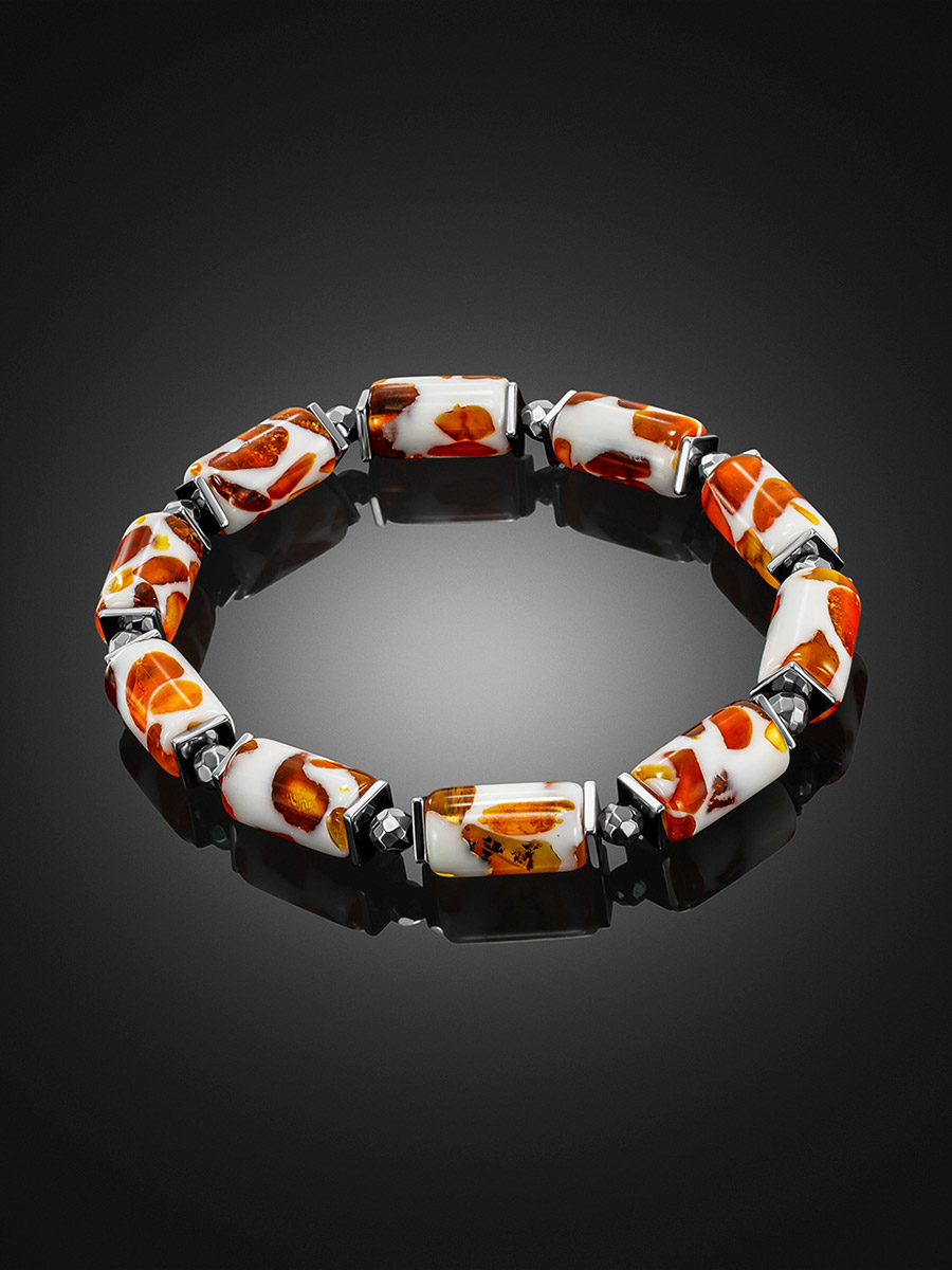 Яркий стильный браслет из янтарной мозаики «Далматин»