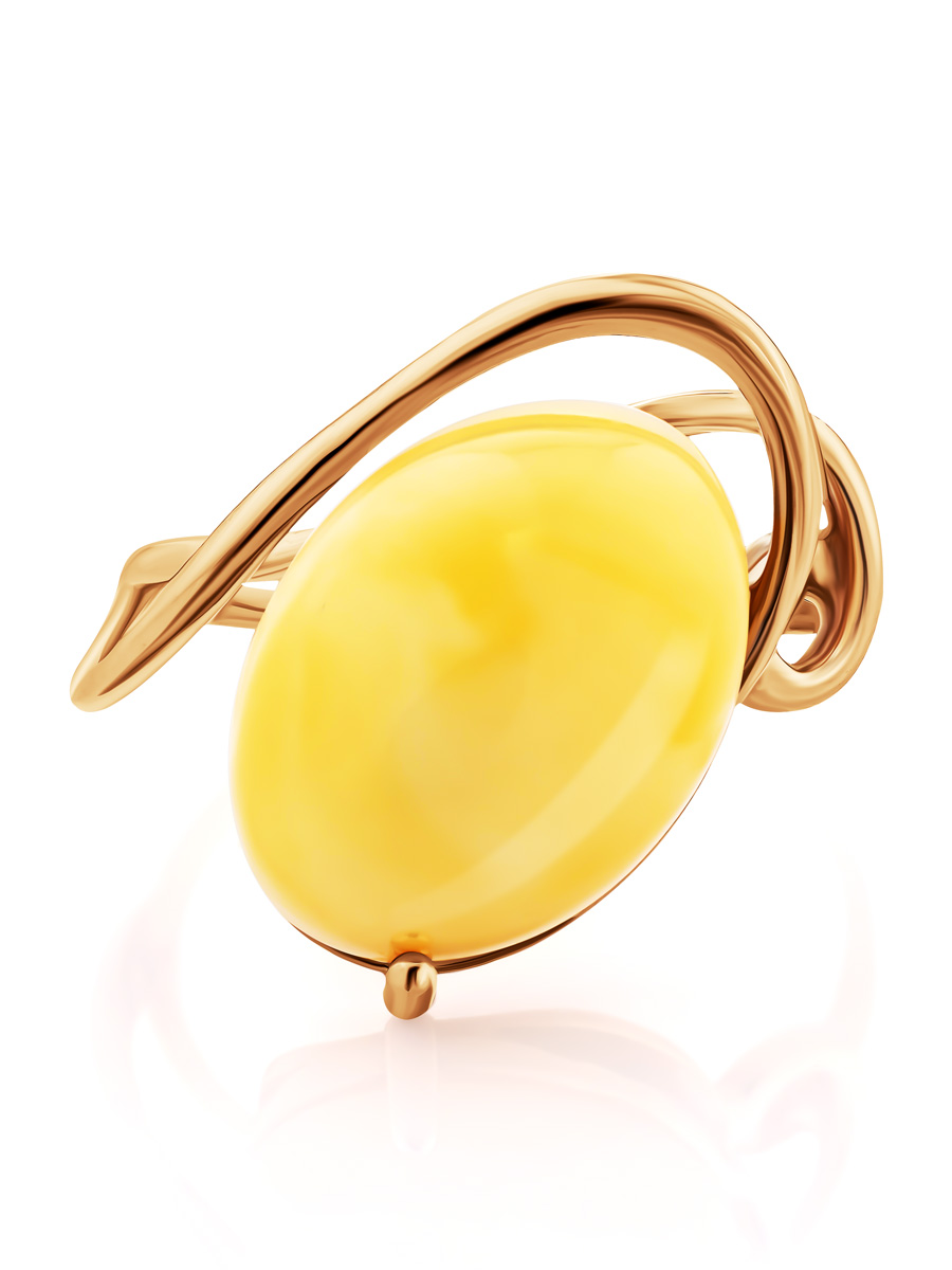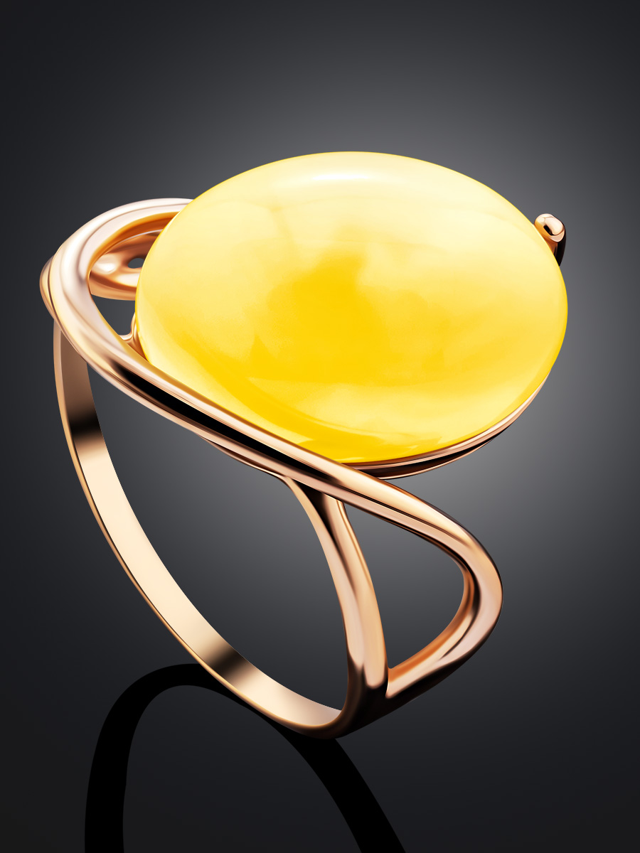 Яркое и необычное кольцо с натуральным медовым янтарём «Сигма»