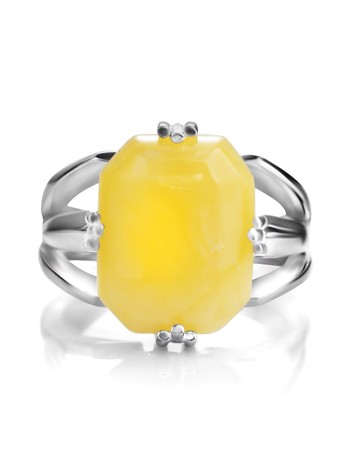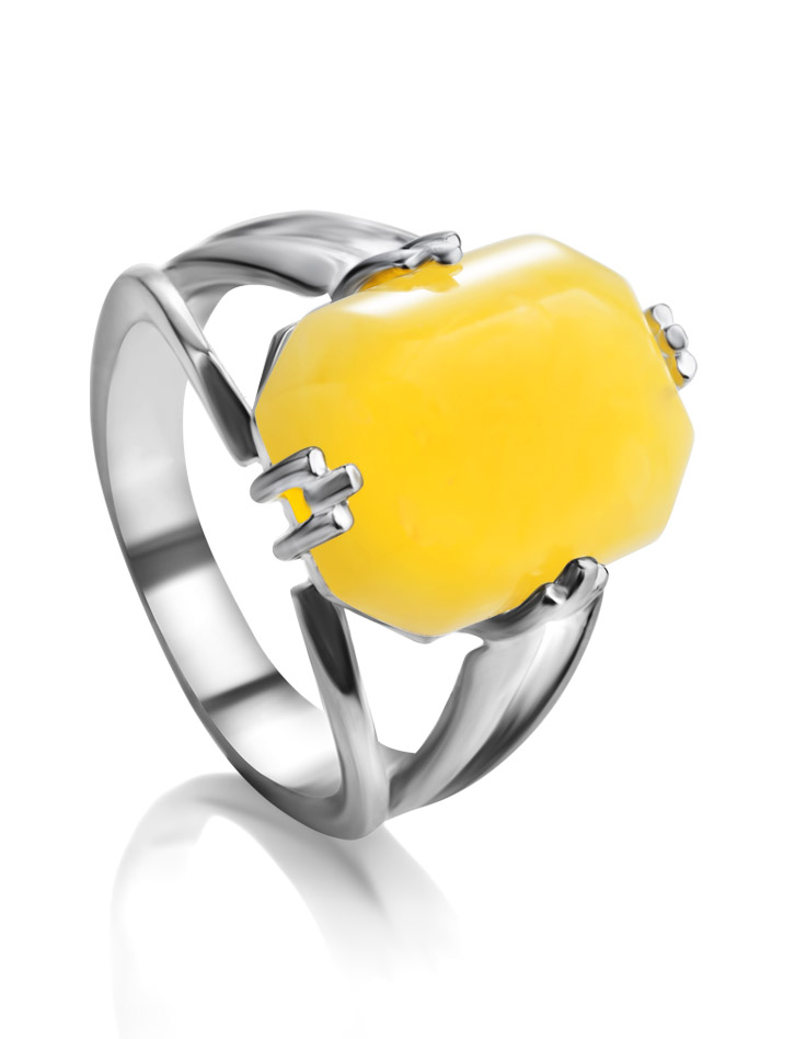 Яркое кольцо из цельного медового янтаря «Марокко»