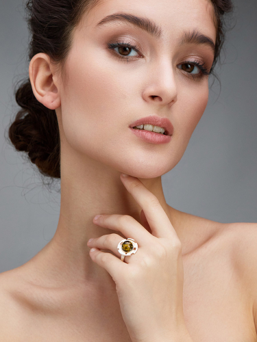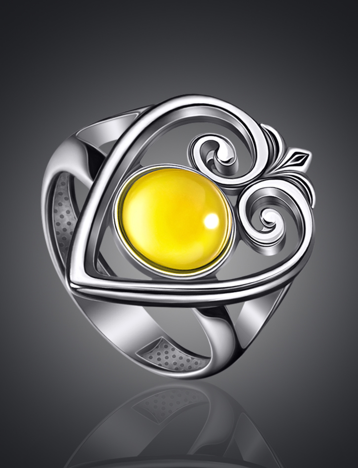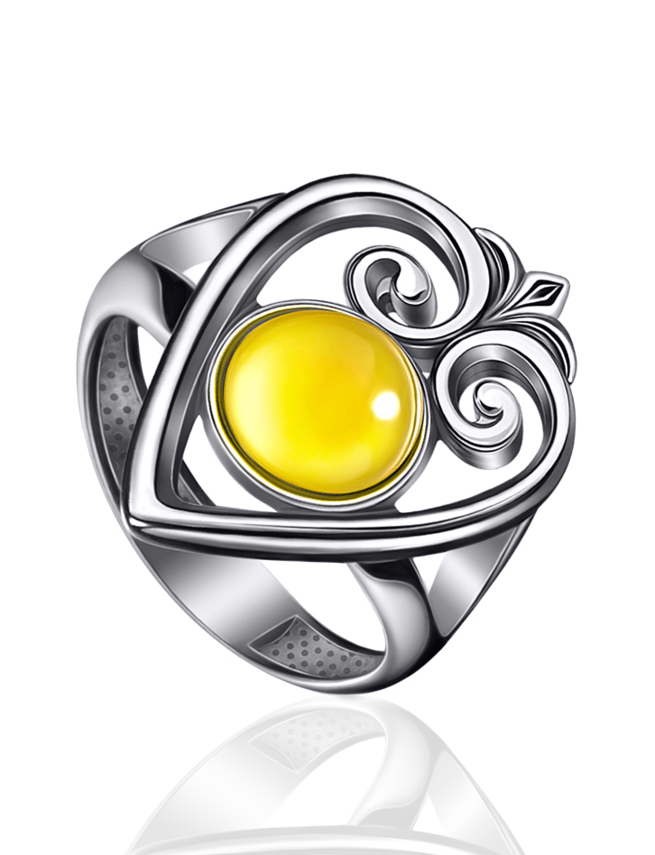Яркое кольцо из натурального медового янтаря «Кордова»