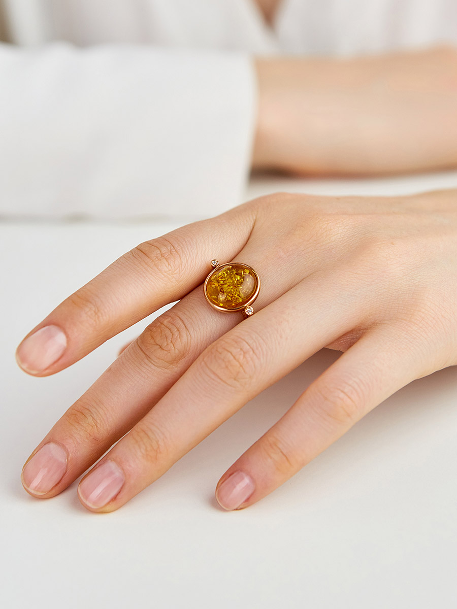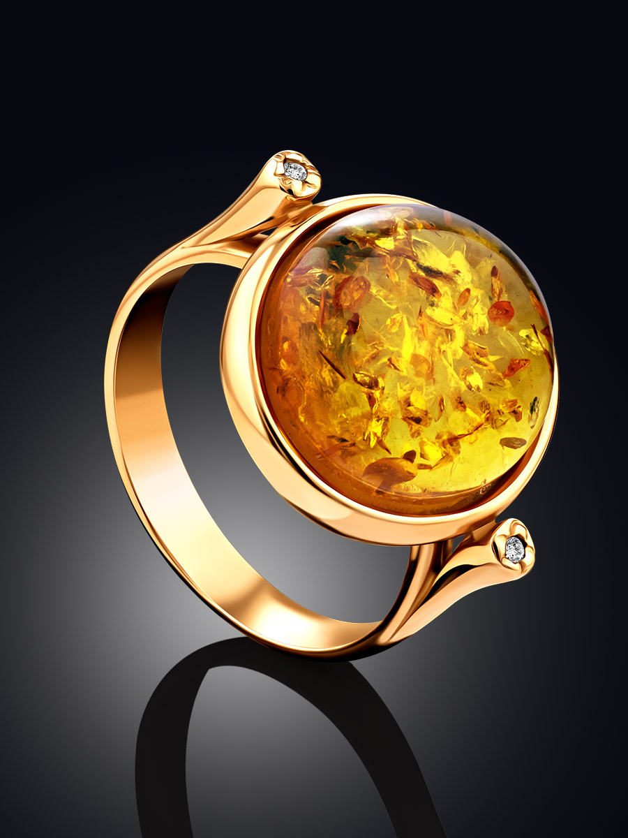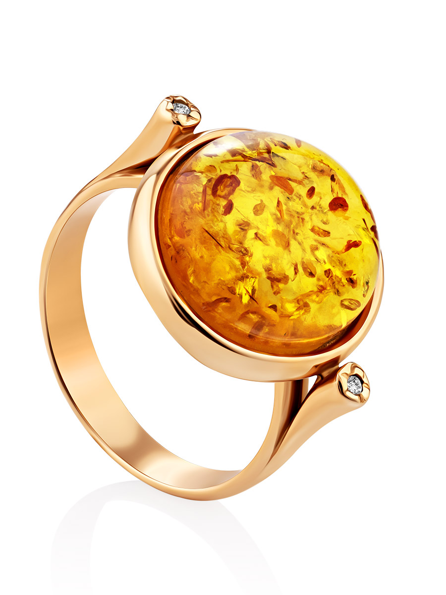 Яркое кольцо из натурального золотисто-лимонного янтаря «Фемида»