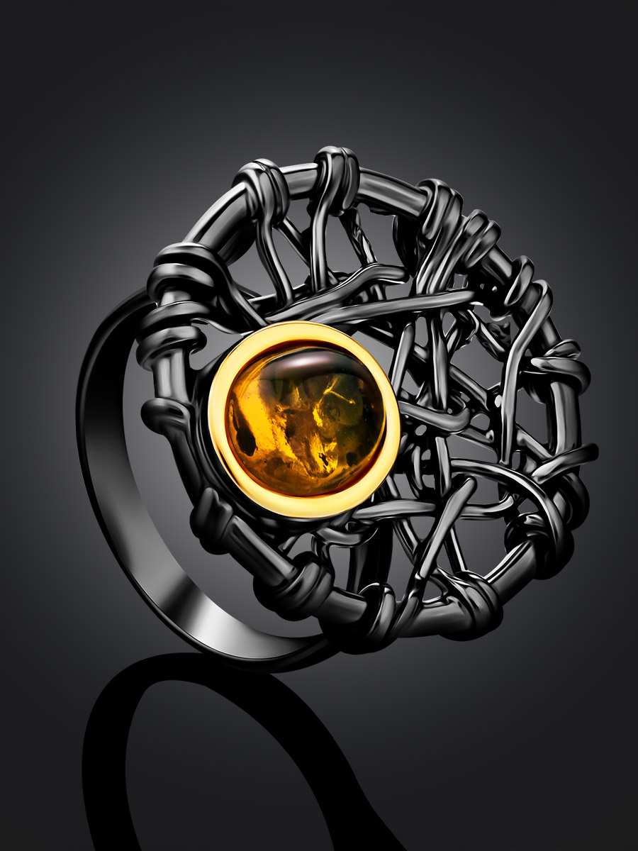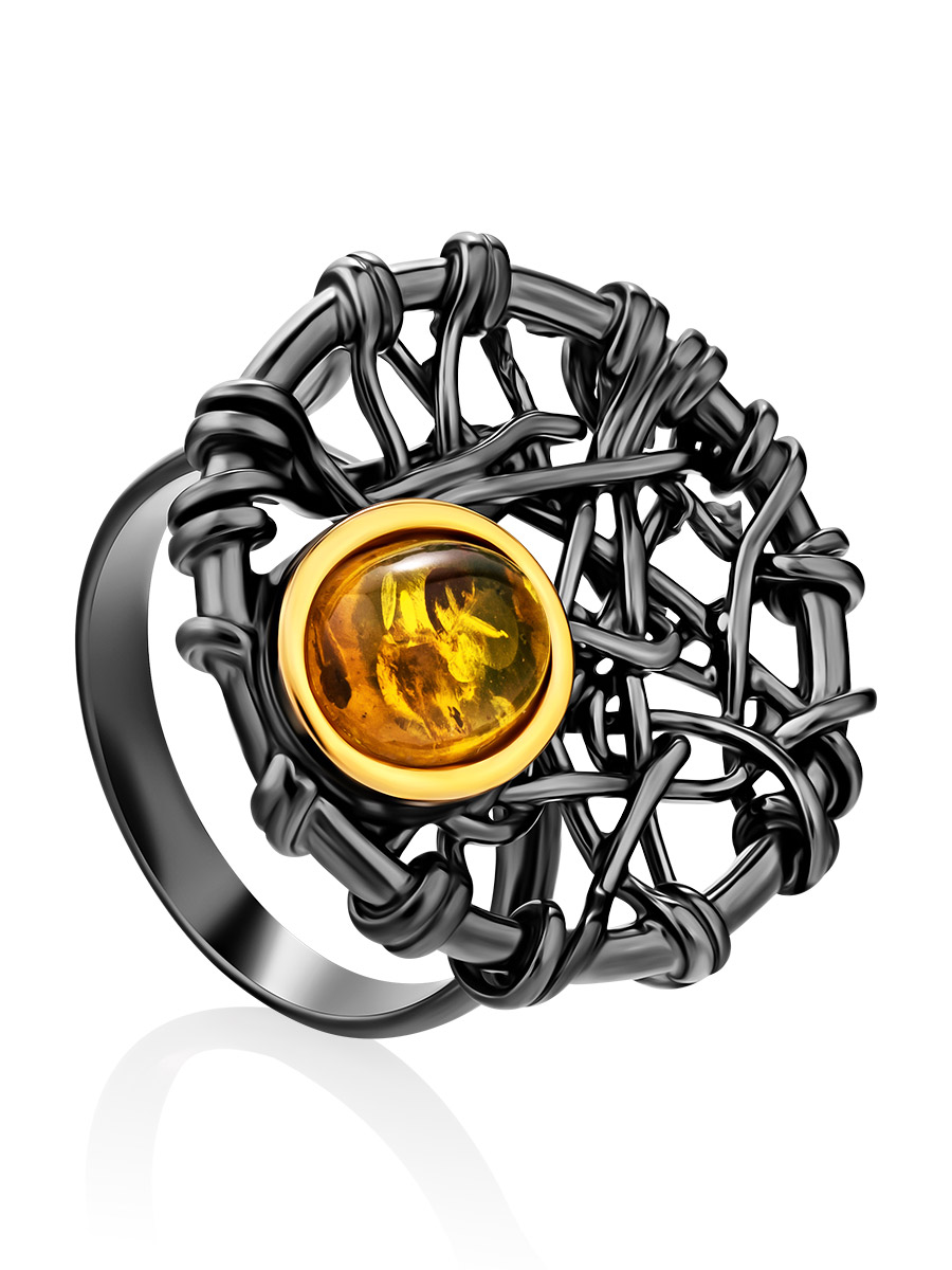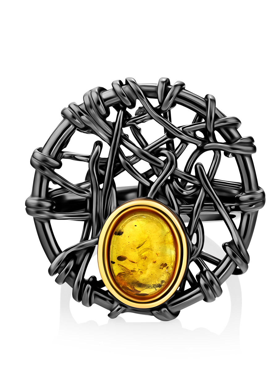 Яркое кольцо из натурального золотистого янтаря «Гнездо»