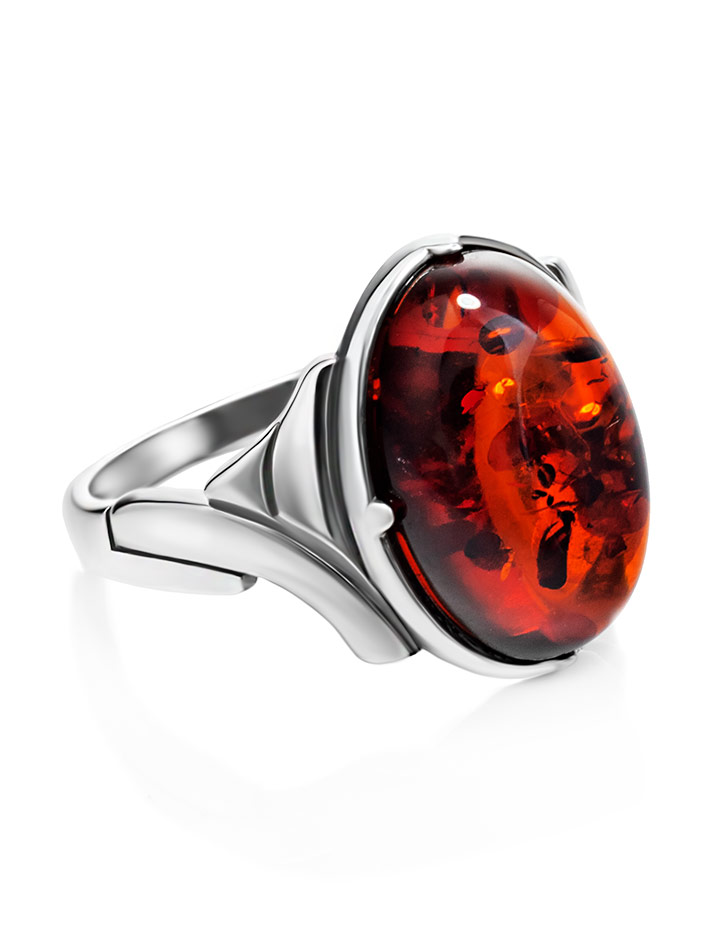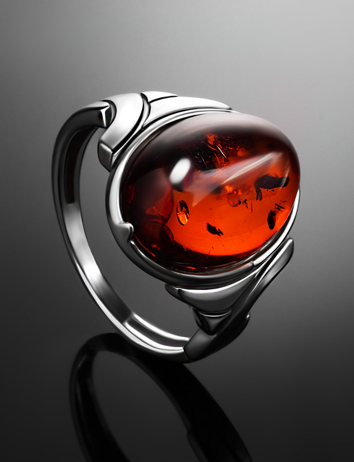 Яркое кольцо из янтаря вишнёвого цвета «Люмьер»
