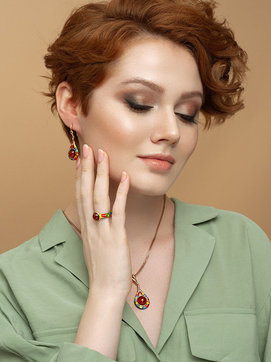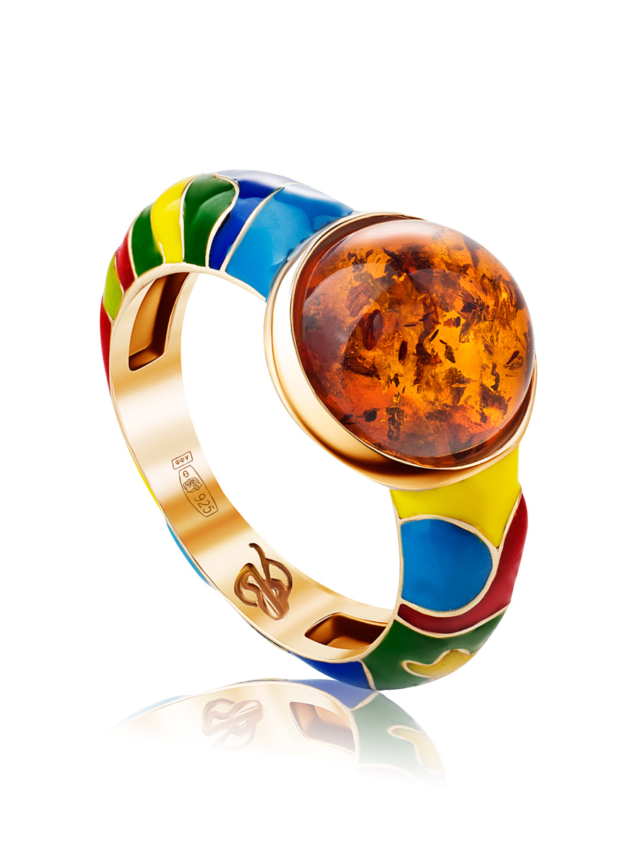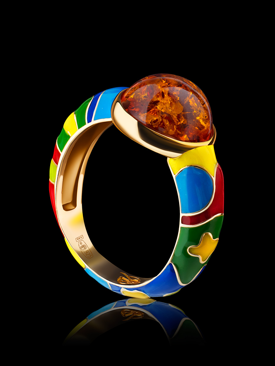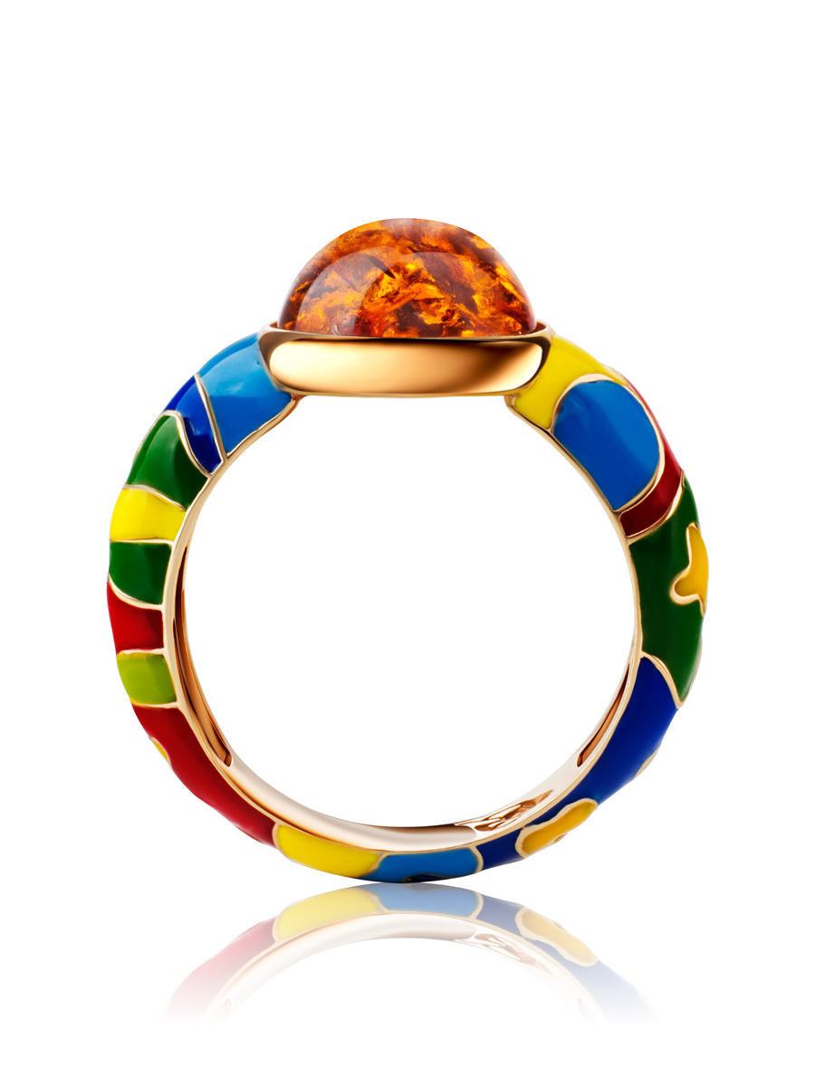 Яркое кольцо с эмалью и натуральным янтарём «Суздаль»