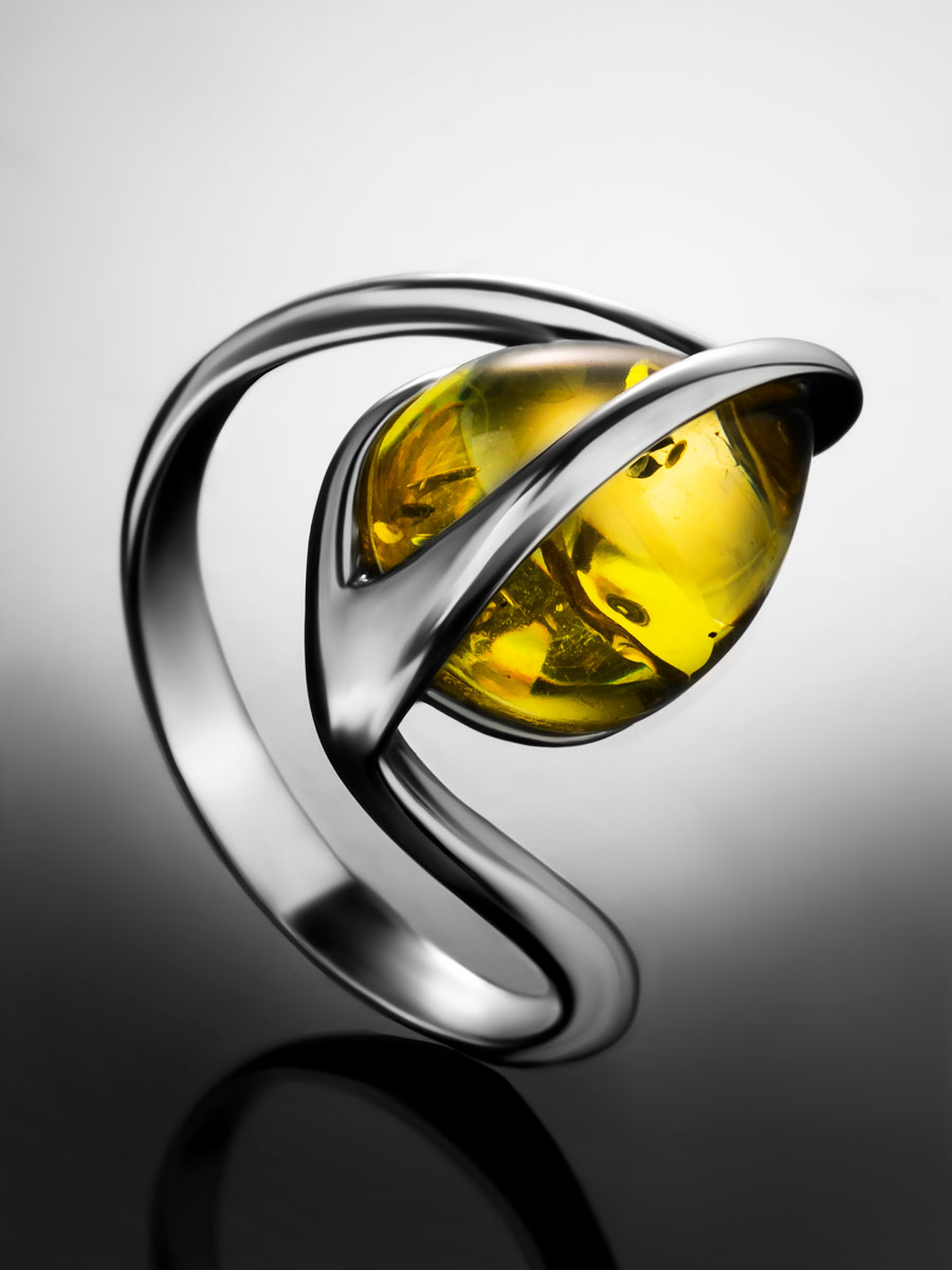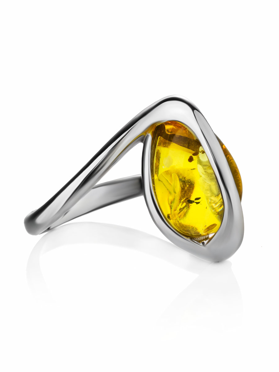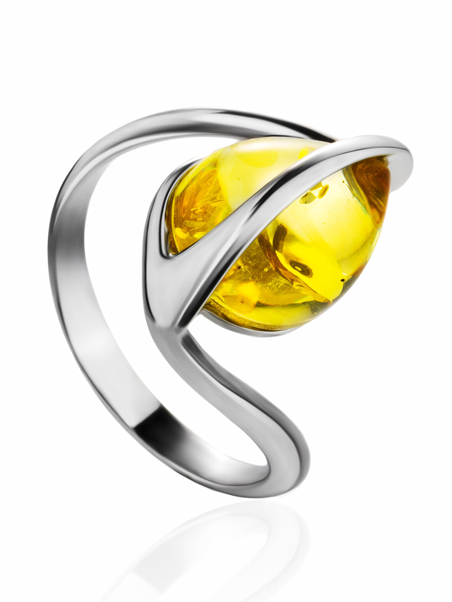 Яркое кольцо с натуральным лимонным янтарём «Голконда»