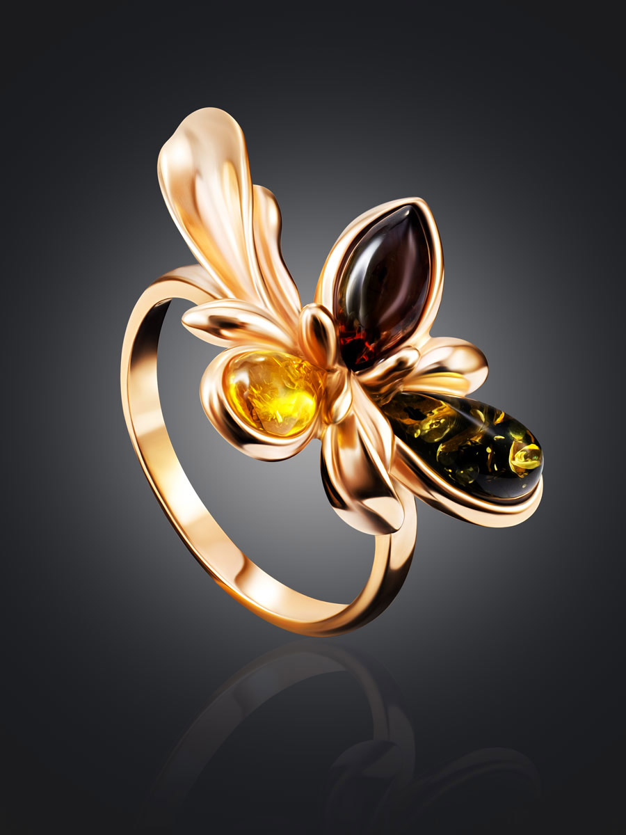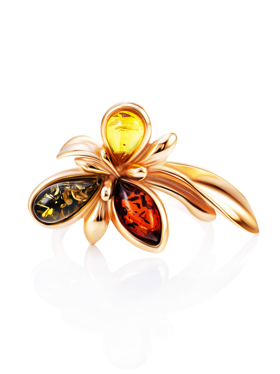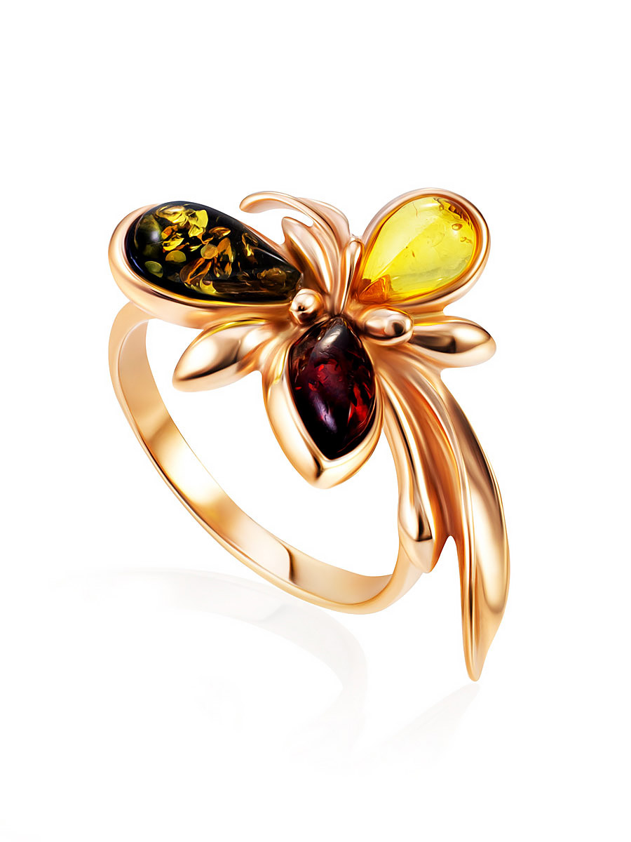 Яркое кольцо с разноцветным янтарём «Кипарис»