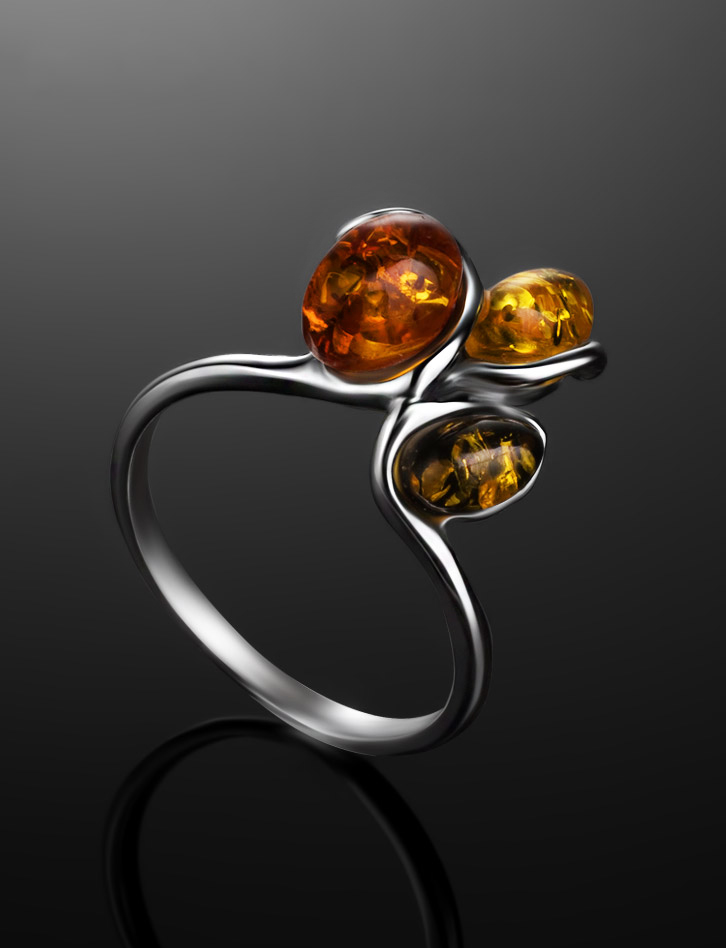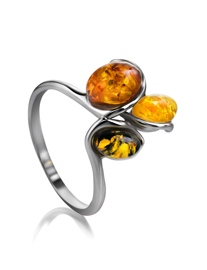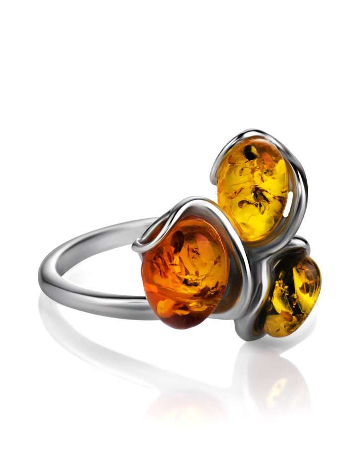 Яркое кольцо со вставками из натурального балтийского янтаря разных цветов «Флора»