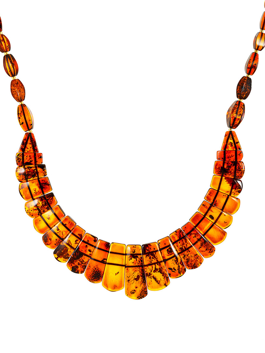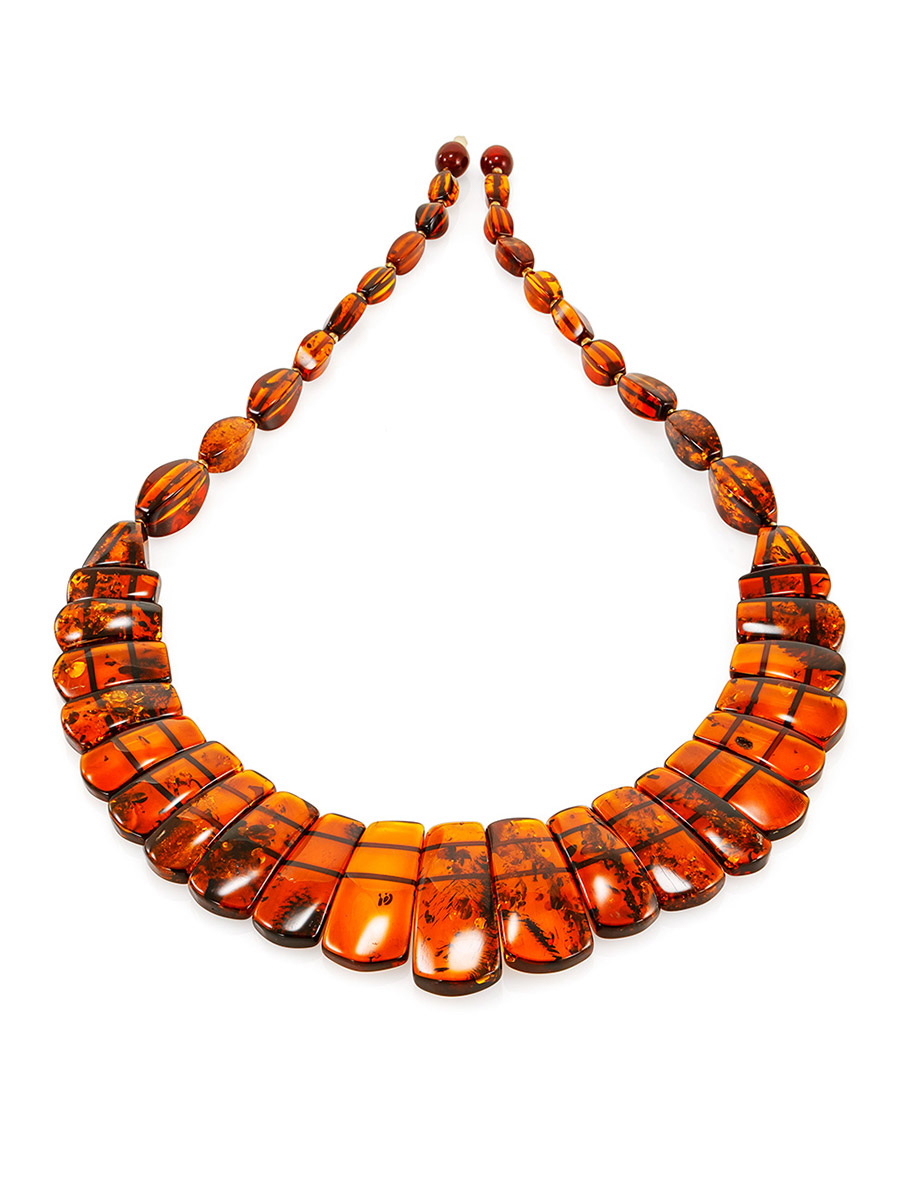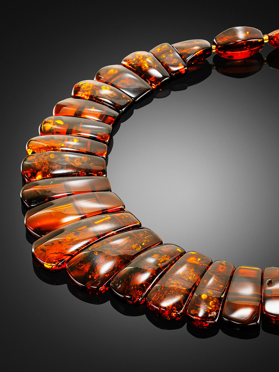 Яркое колье из натурального балтийского янтаря коньячного цвета «Пластинки»