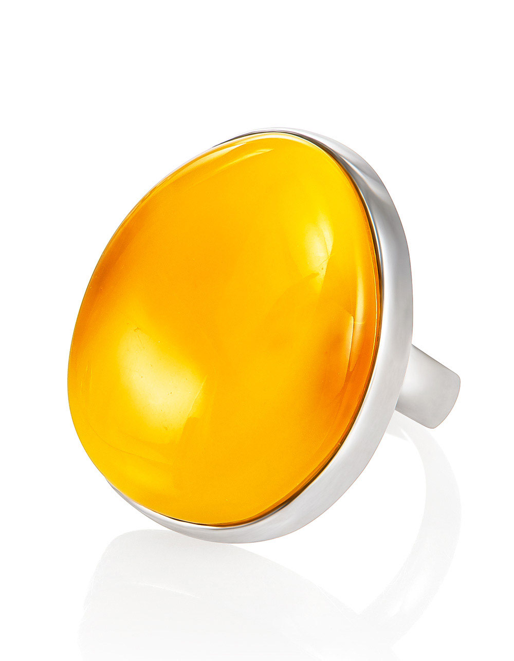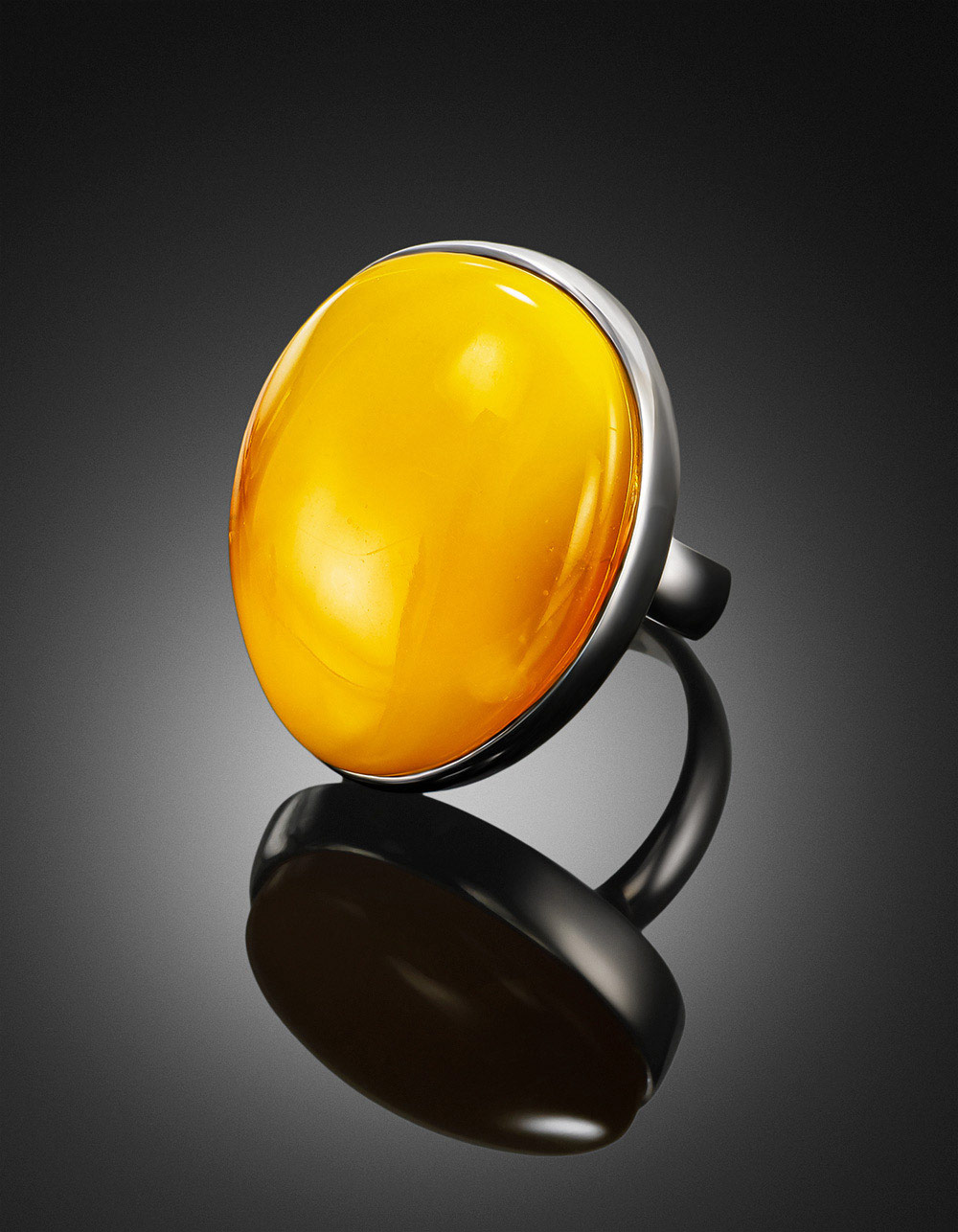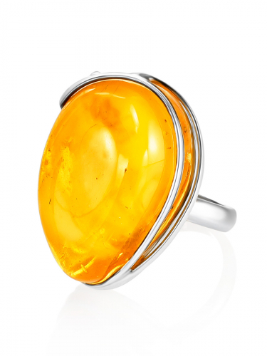 Яркое красивое кольцо «Глянец» с натуральным медовым янтарём