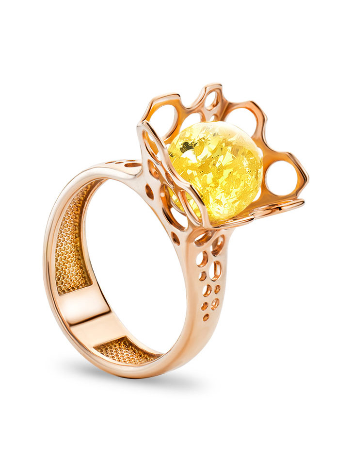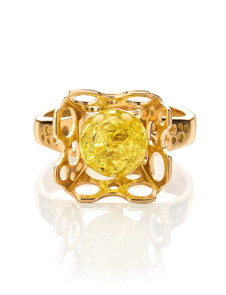 Яркое красивое кольцо с лимонным янтарём «Женева»