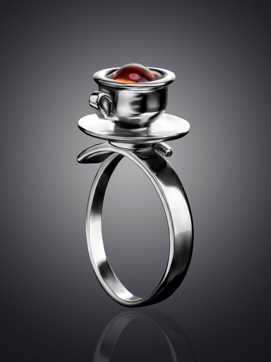 Яркое оригинальное кольцо из коньячного янтаря Hasta Barista