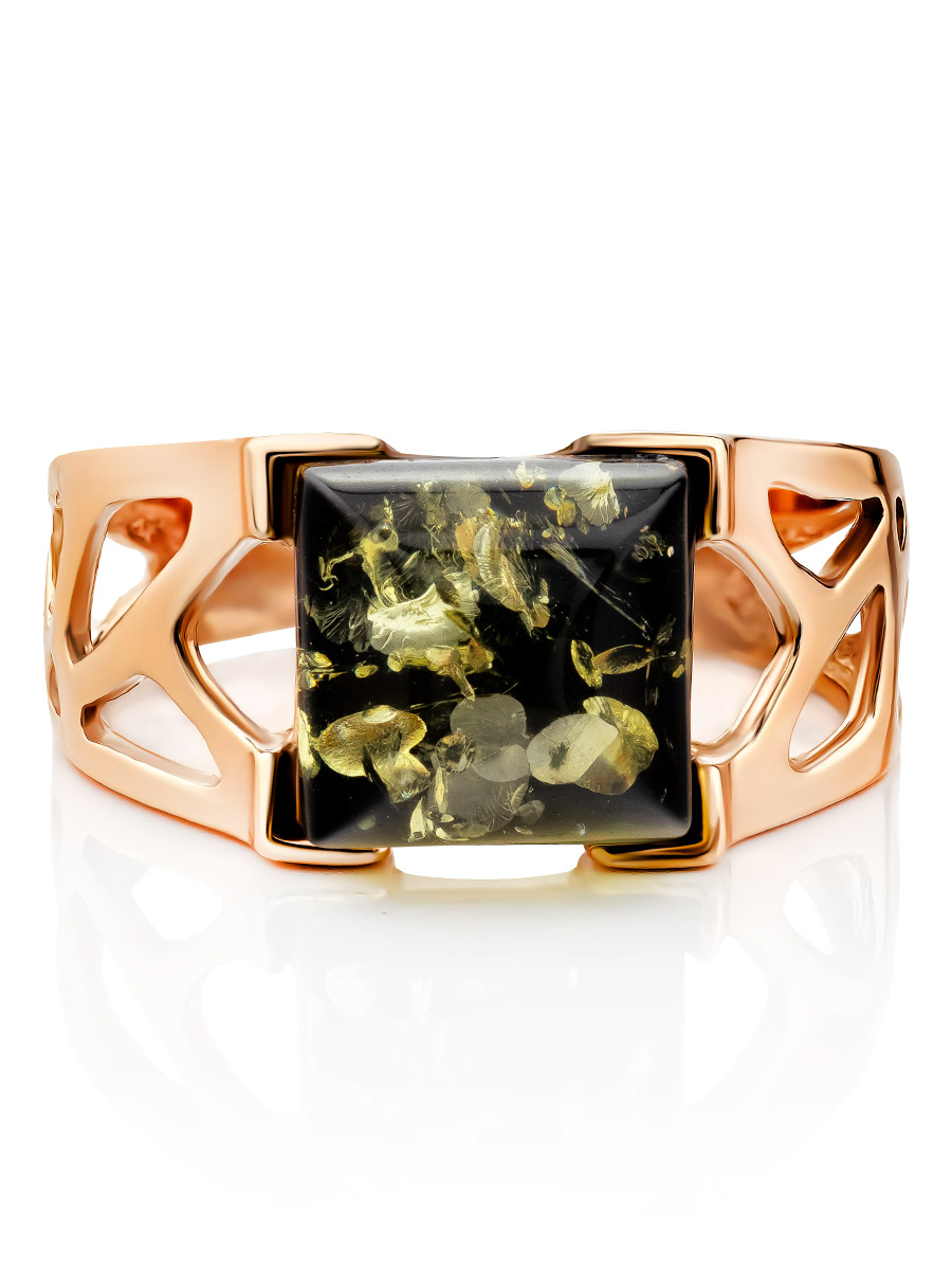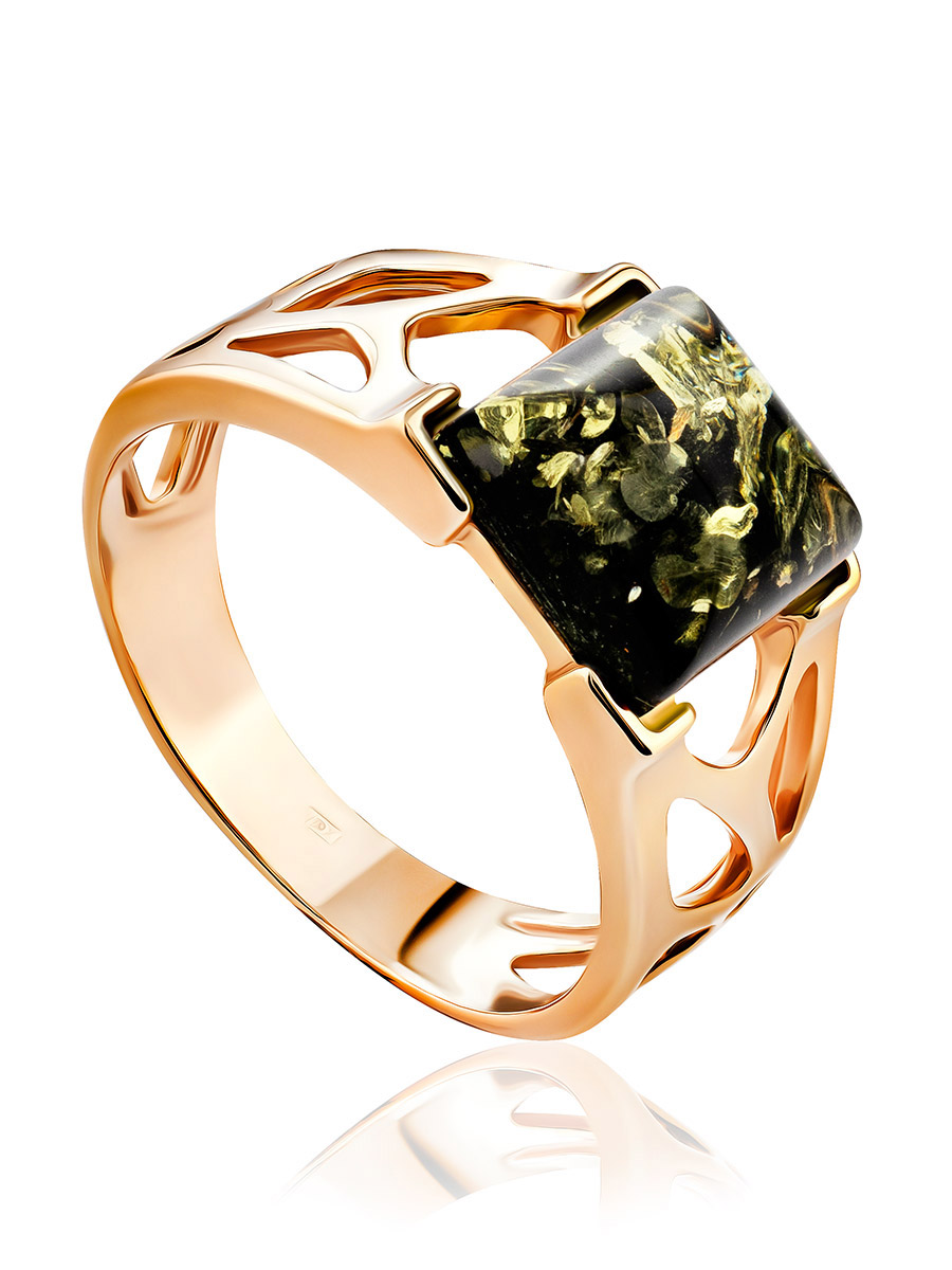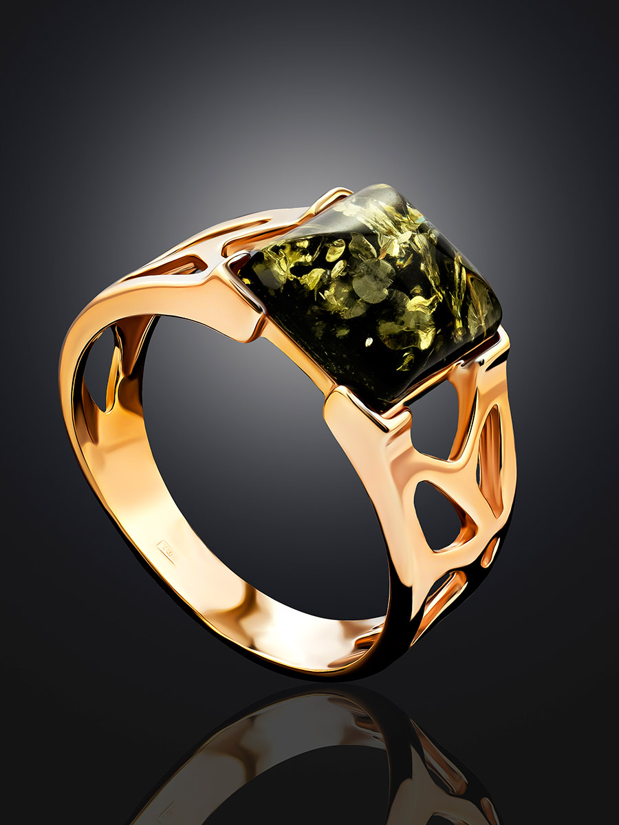 Яркое оригинальное кольцо из янтаря в позолоченном серебре «Артемида»