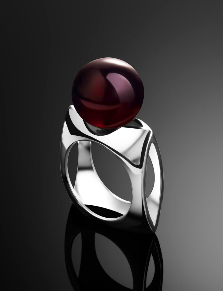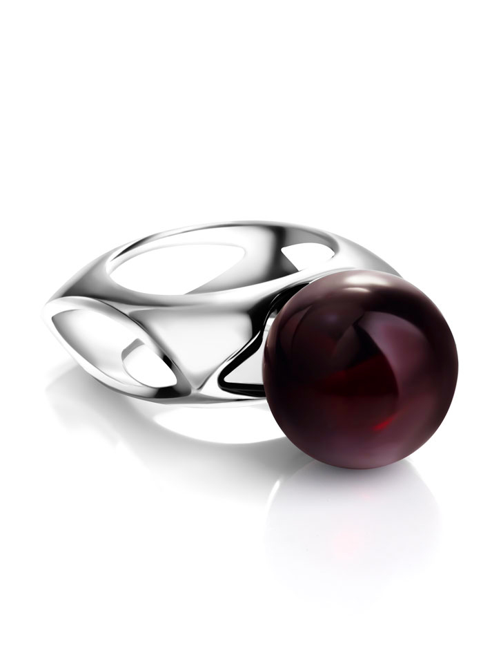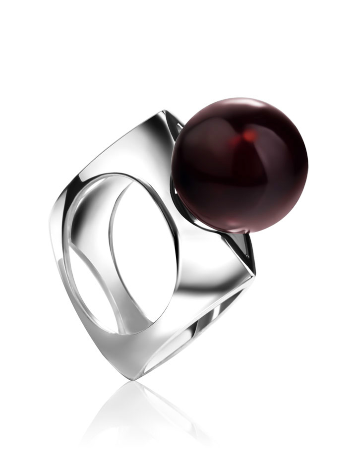 Яркое стильное кольцо из вишнёвого янтаря «Юпитер»