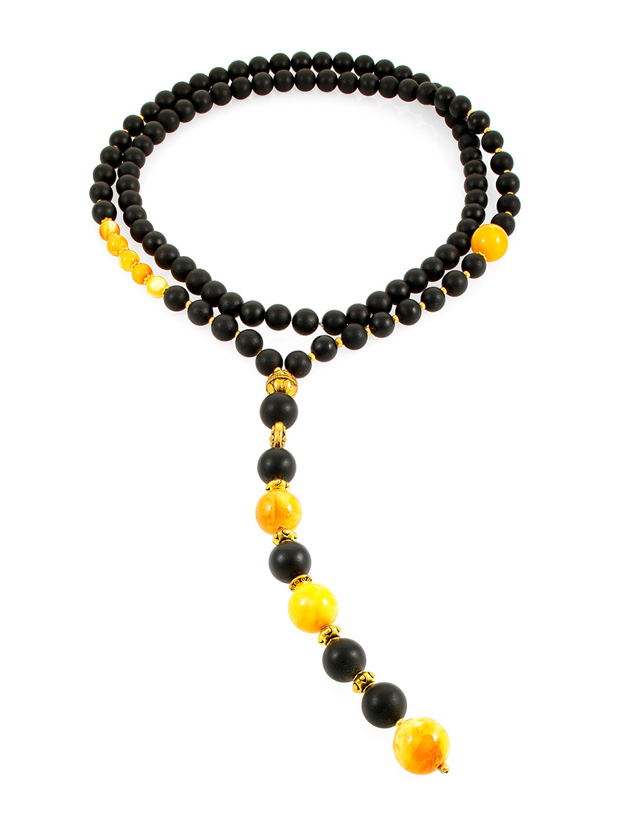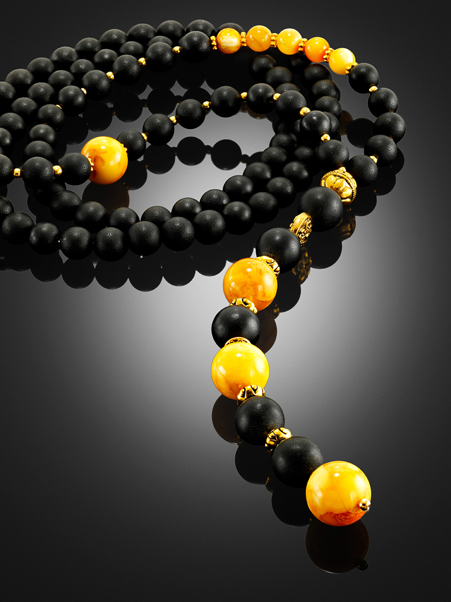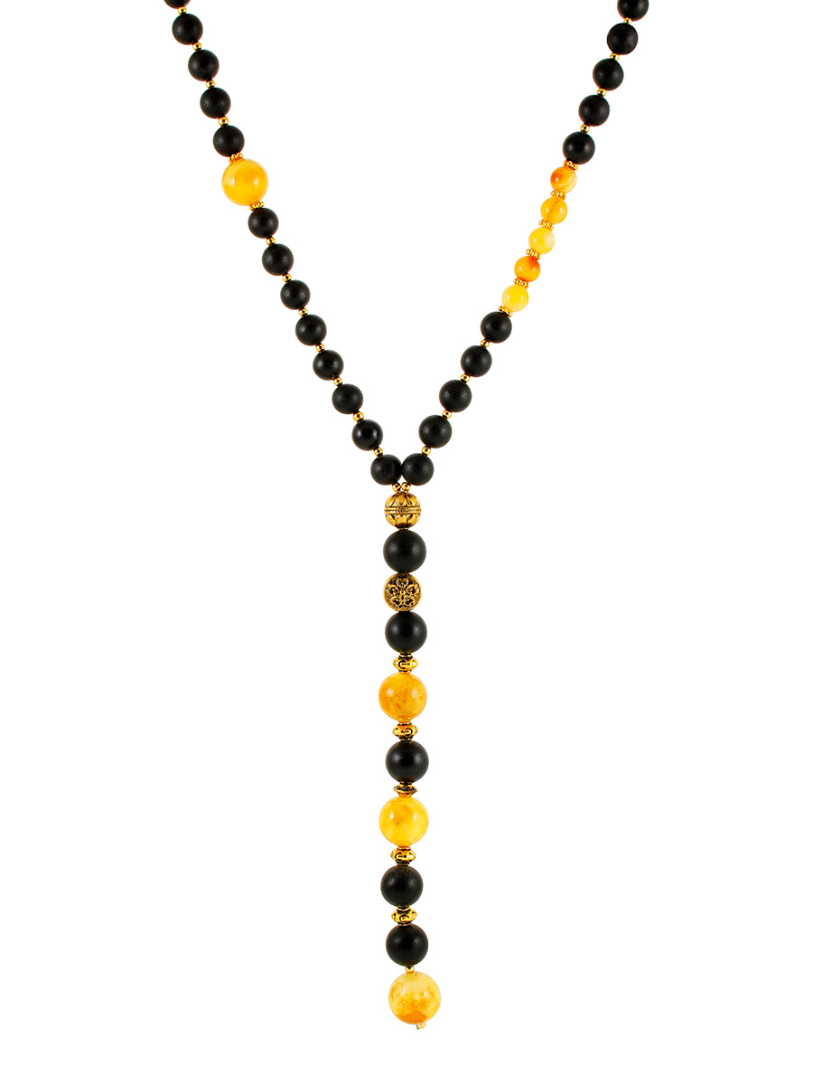 Яркое стильное ожерелье в виде чёток из натурального формованного янтаря «Куба»