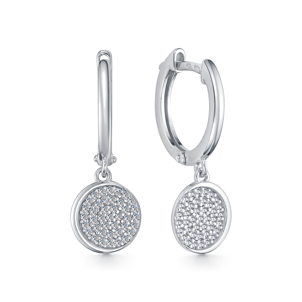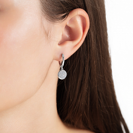 11-1346 Серьги с фианитом родированные серебро 925*