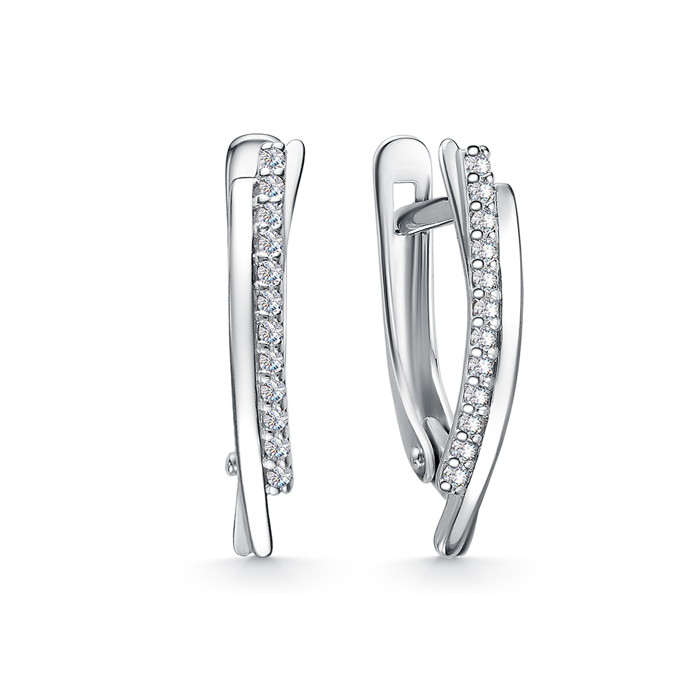 11-2472 Серьги с фианитом родированные серебро 925*