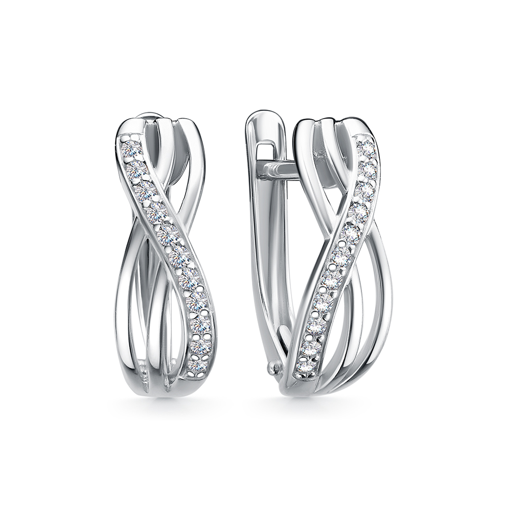11-2558 Серьги с фианитом родированные серебро 925*