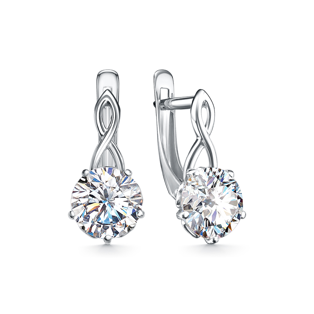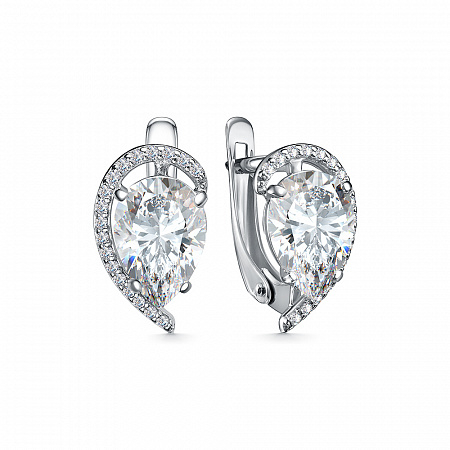 11-2609 Серьги с фианитом родированные серебро 925*
