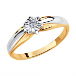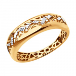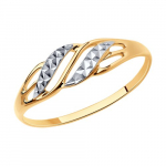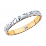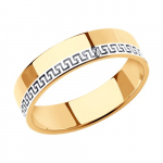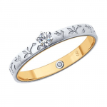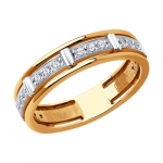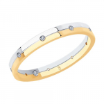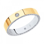 110213 - Обручальное кольцо из комбинированного золота с алмазной гранью с фианитами