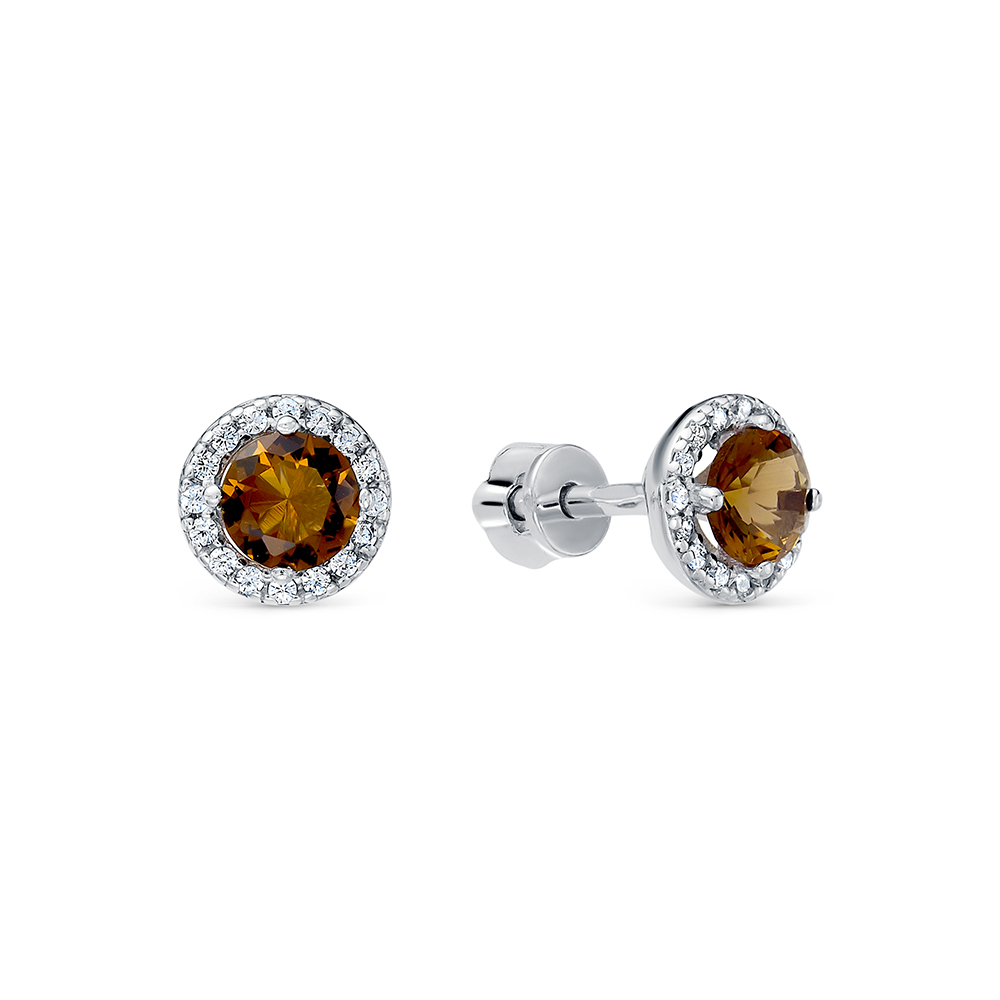 Вставка: Алпанит круг 5.0 цв. 'раух топаз' 2шт, Фианит круг 1.0 бц. 32шт