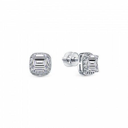 12-0863 Серьги с фианитом родированные серебро 925*