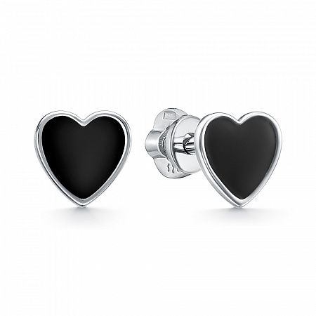 12-2539.2010 Серьги эмаль черная родированные серебро 925*